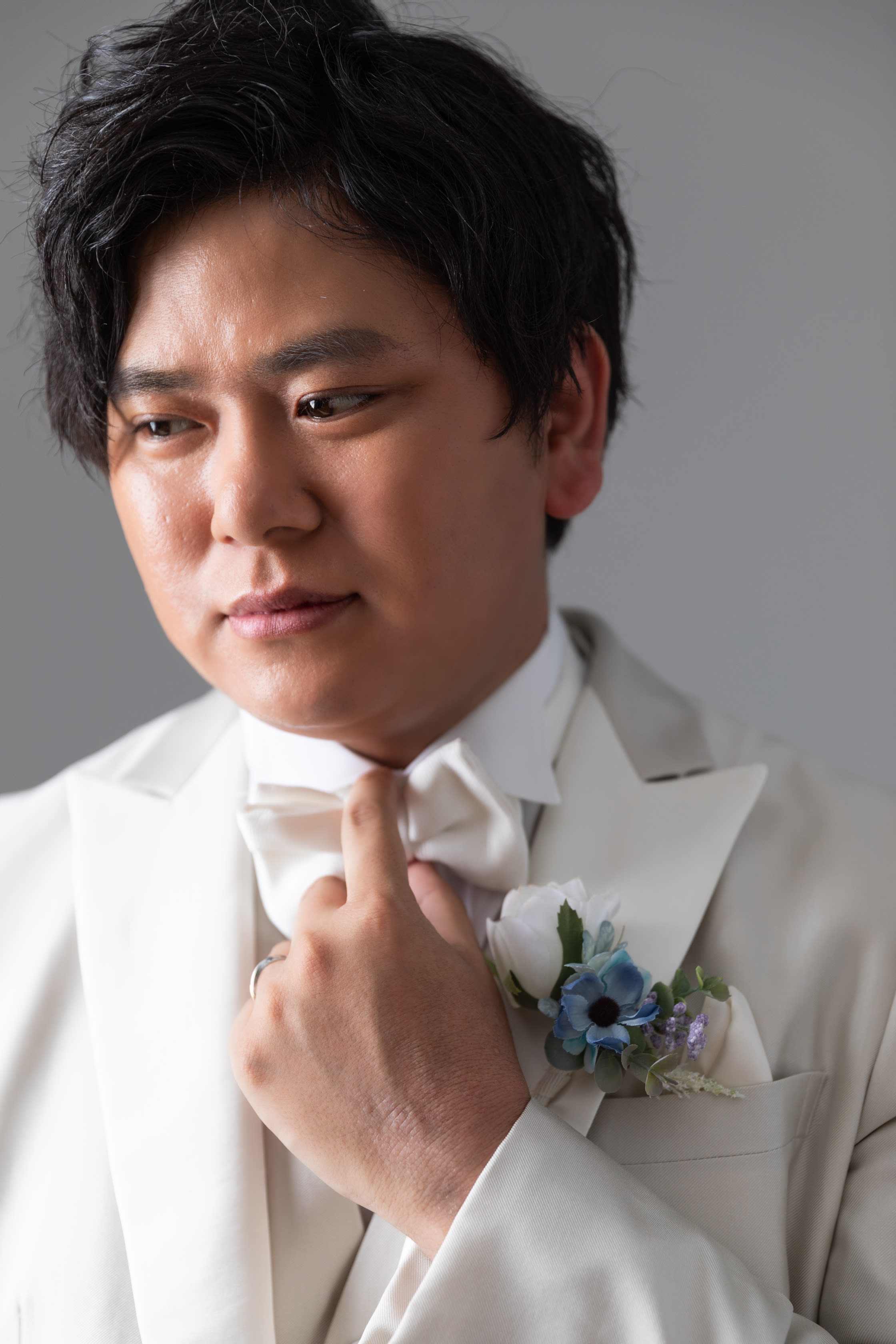 ブーケでご新郎様の顔を隠して。可愛くイタズラショット♡