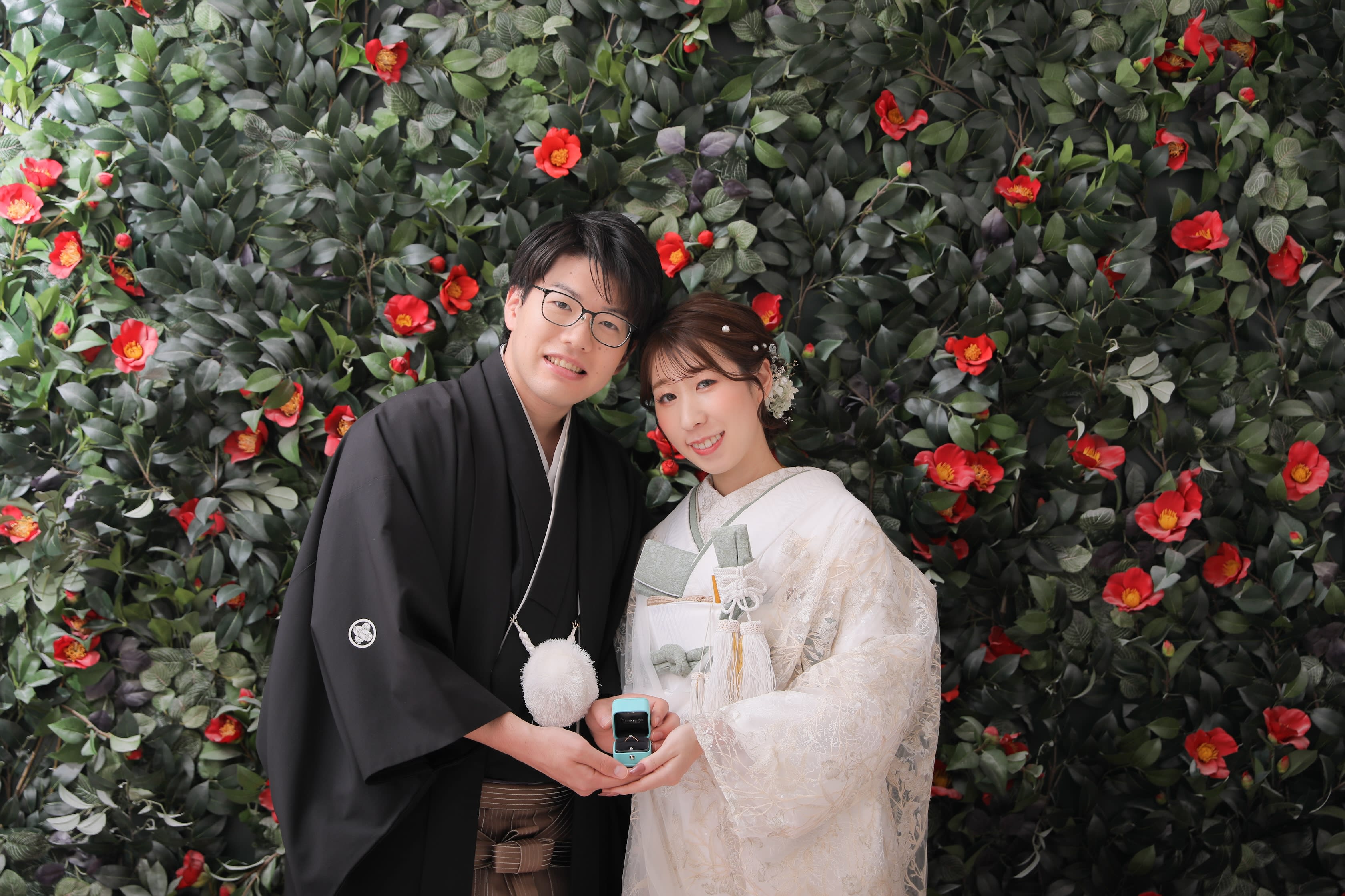 椿のお花の前で!お二人の優しい雰囲気がとっても素敵でした!!
