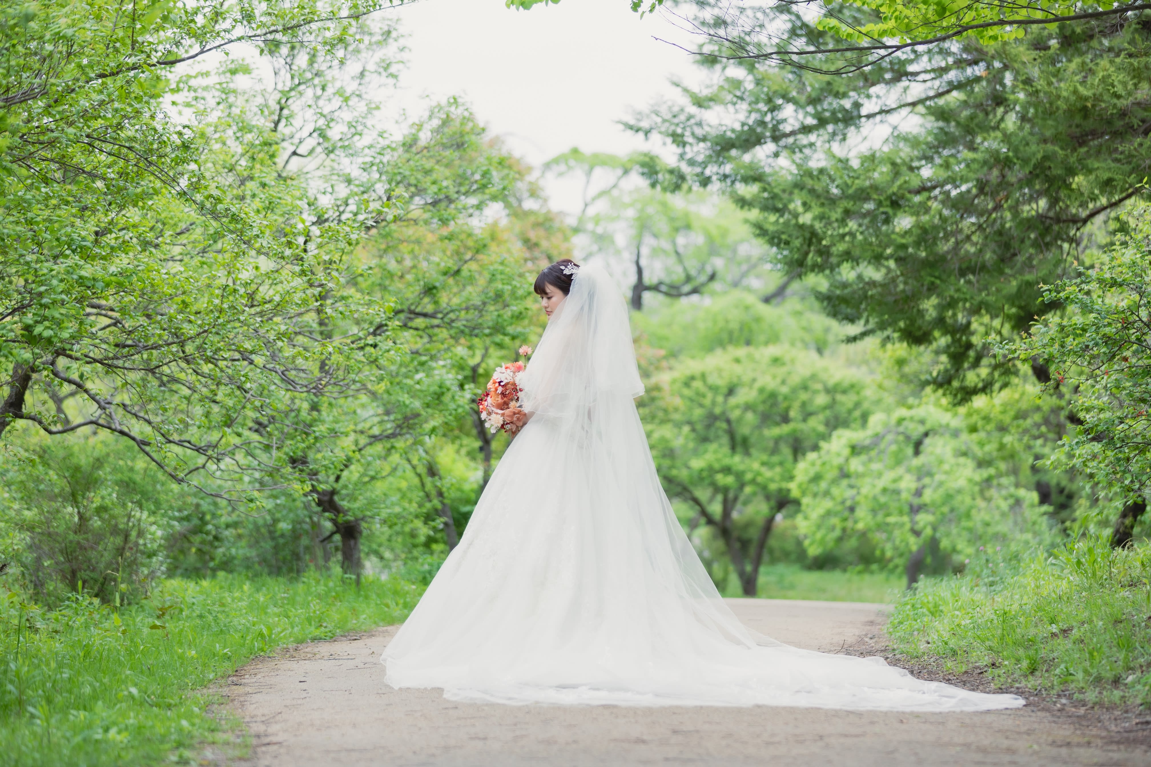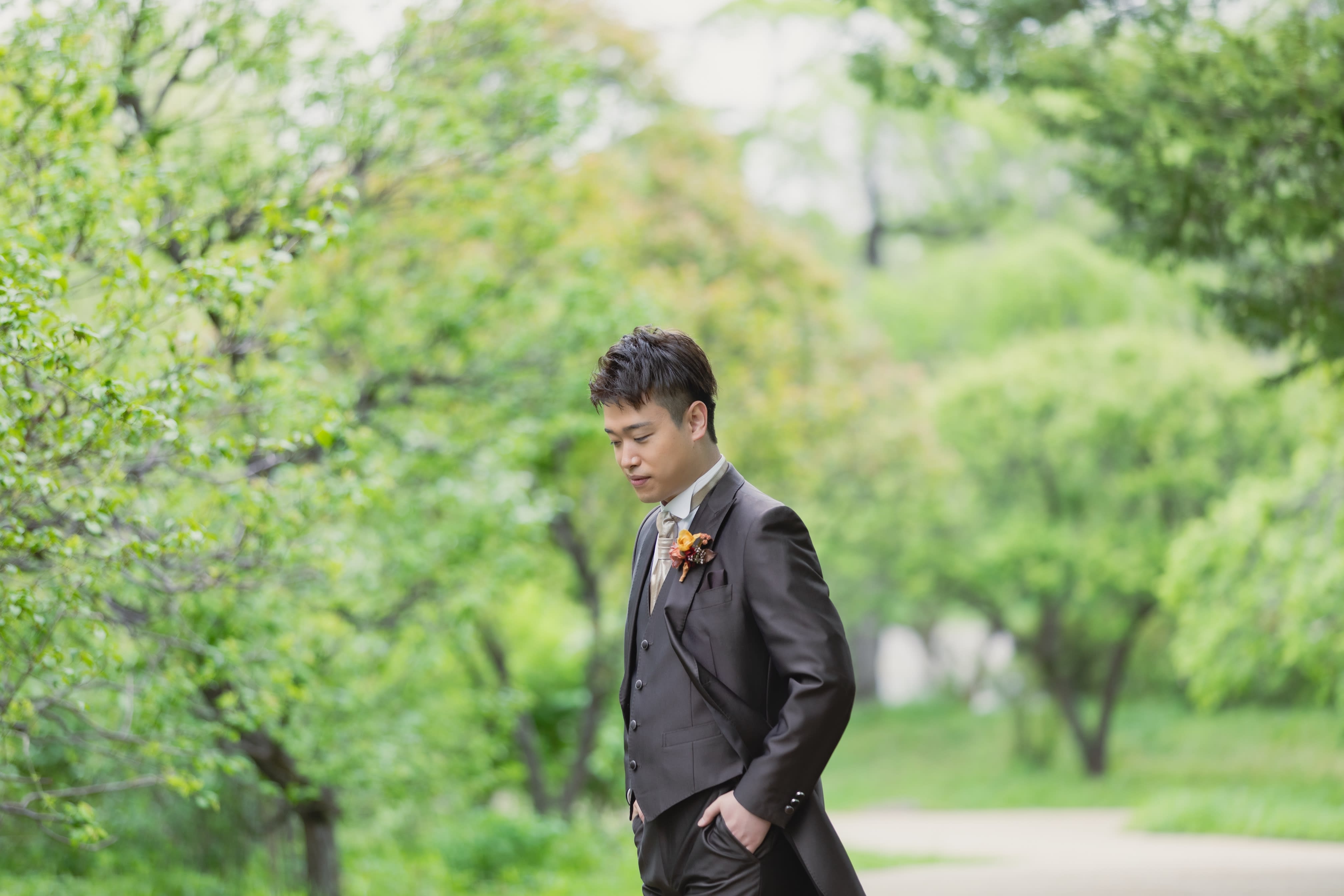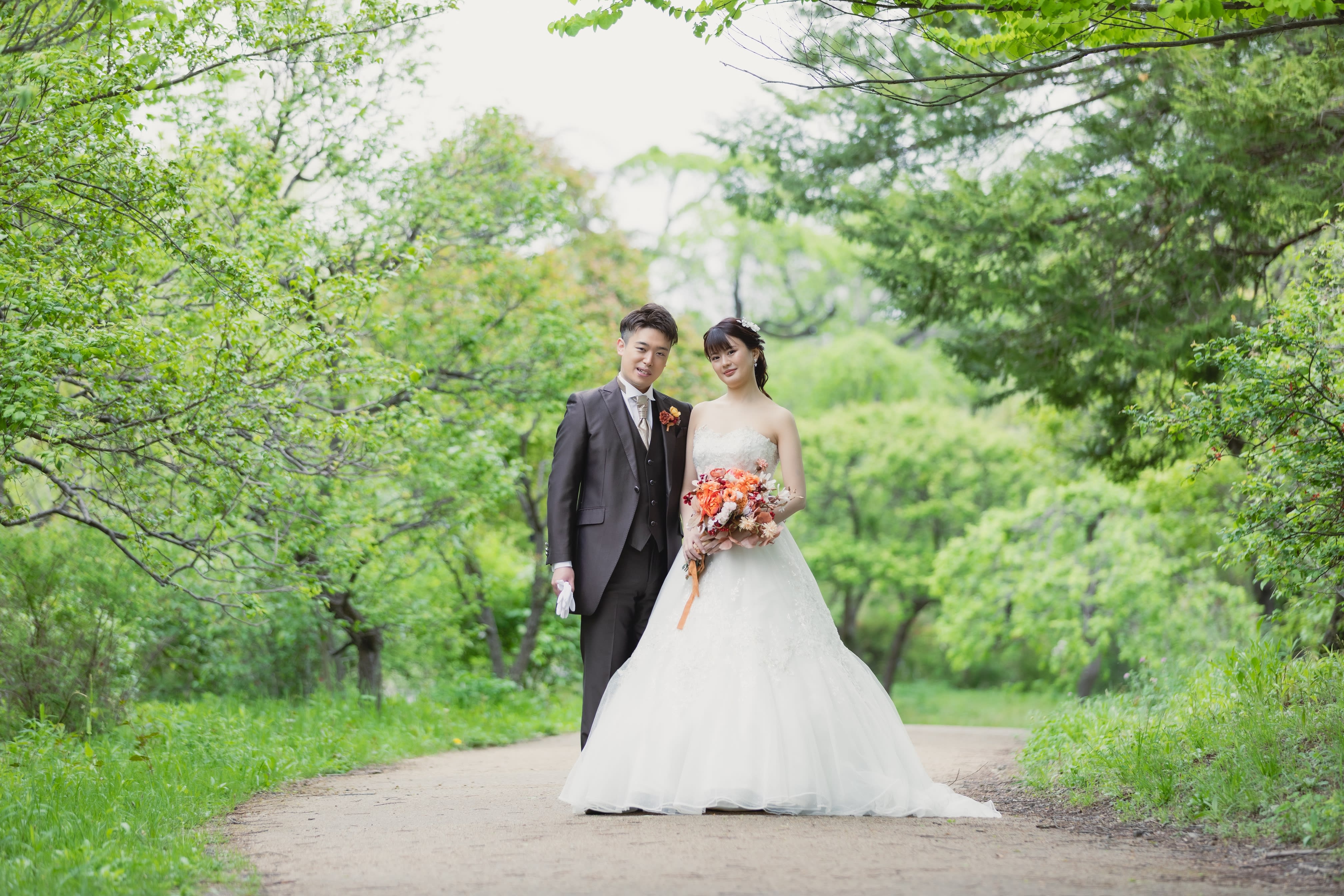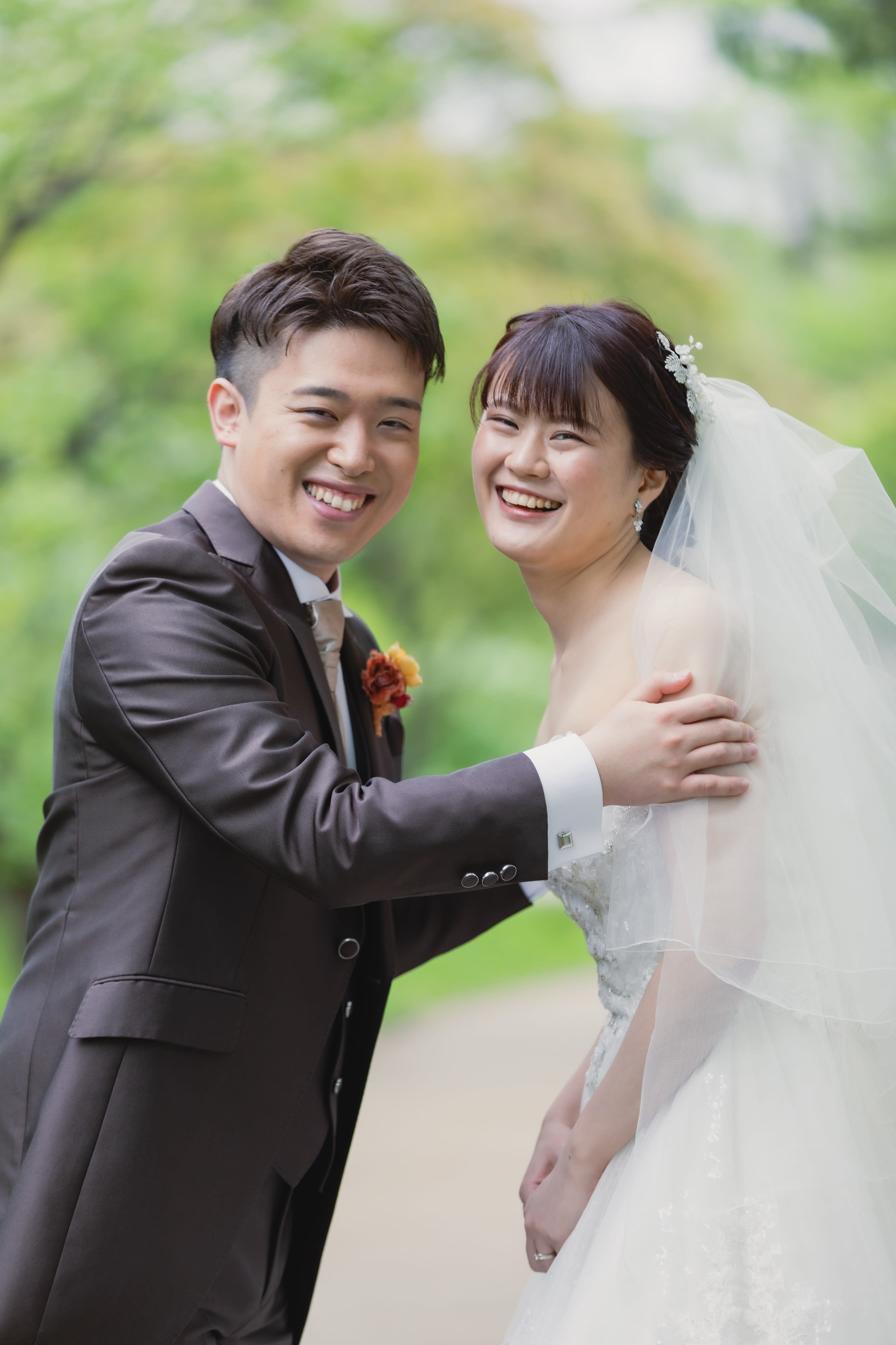 まるで森の中にいるよう!? 新緑豊かな場所で手を繋いだお二人の後ろ姿から振り向きショット!