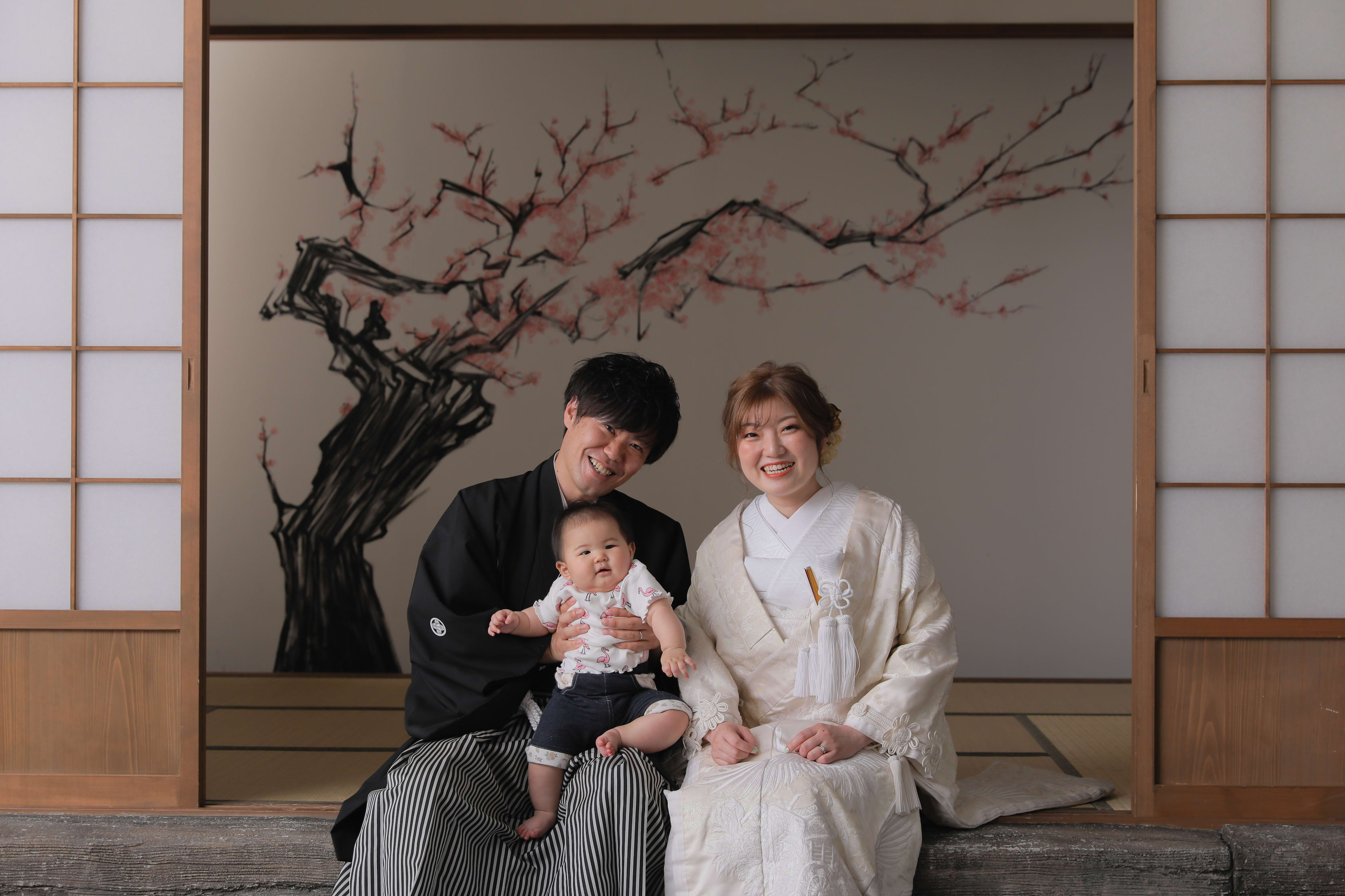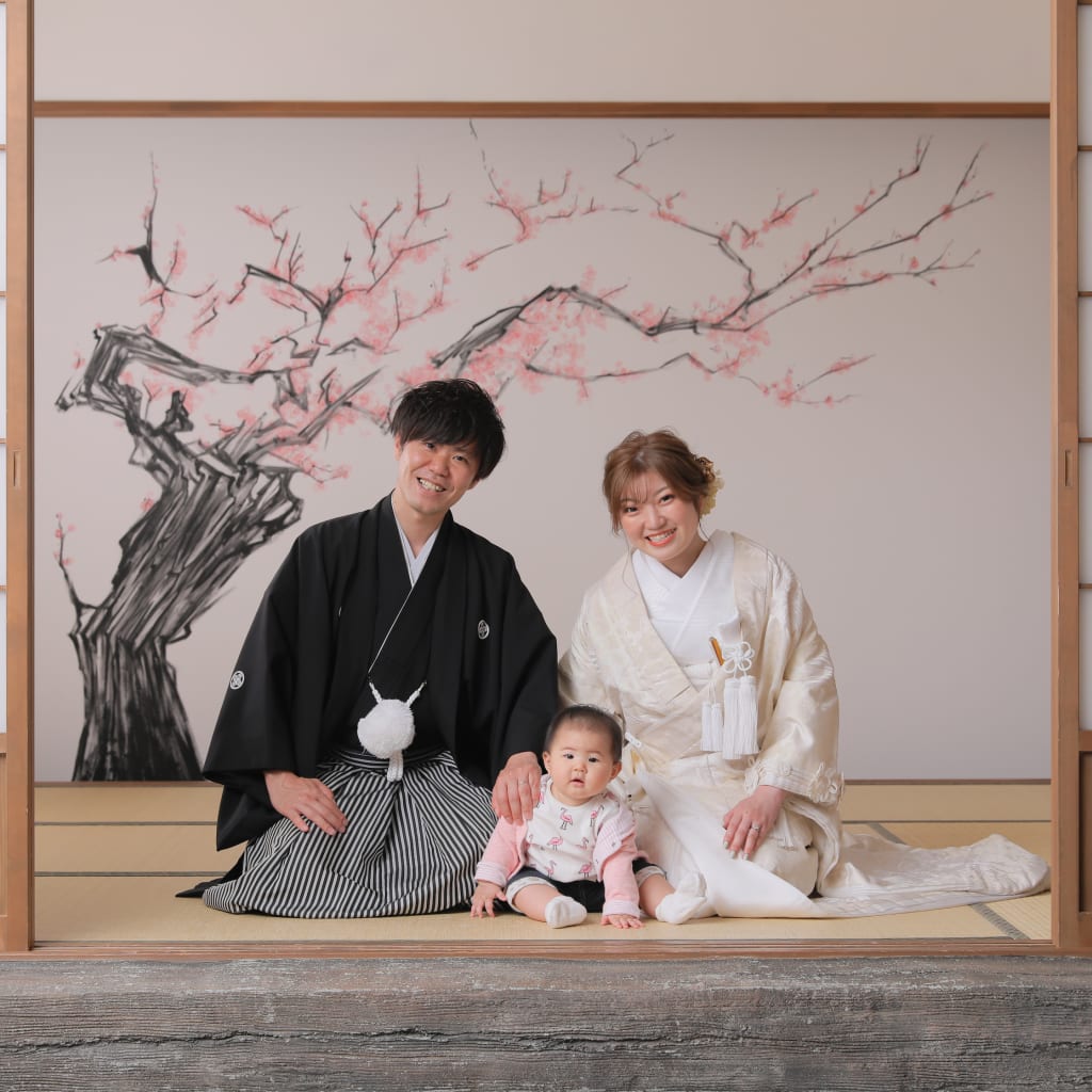 お二人が縁側にいるように撮影をしつつ、今回の撮影ではお二人の大切なお子様も来てくださいました!撮影に混ざってくれることで一気に場が和みました☺︎