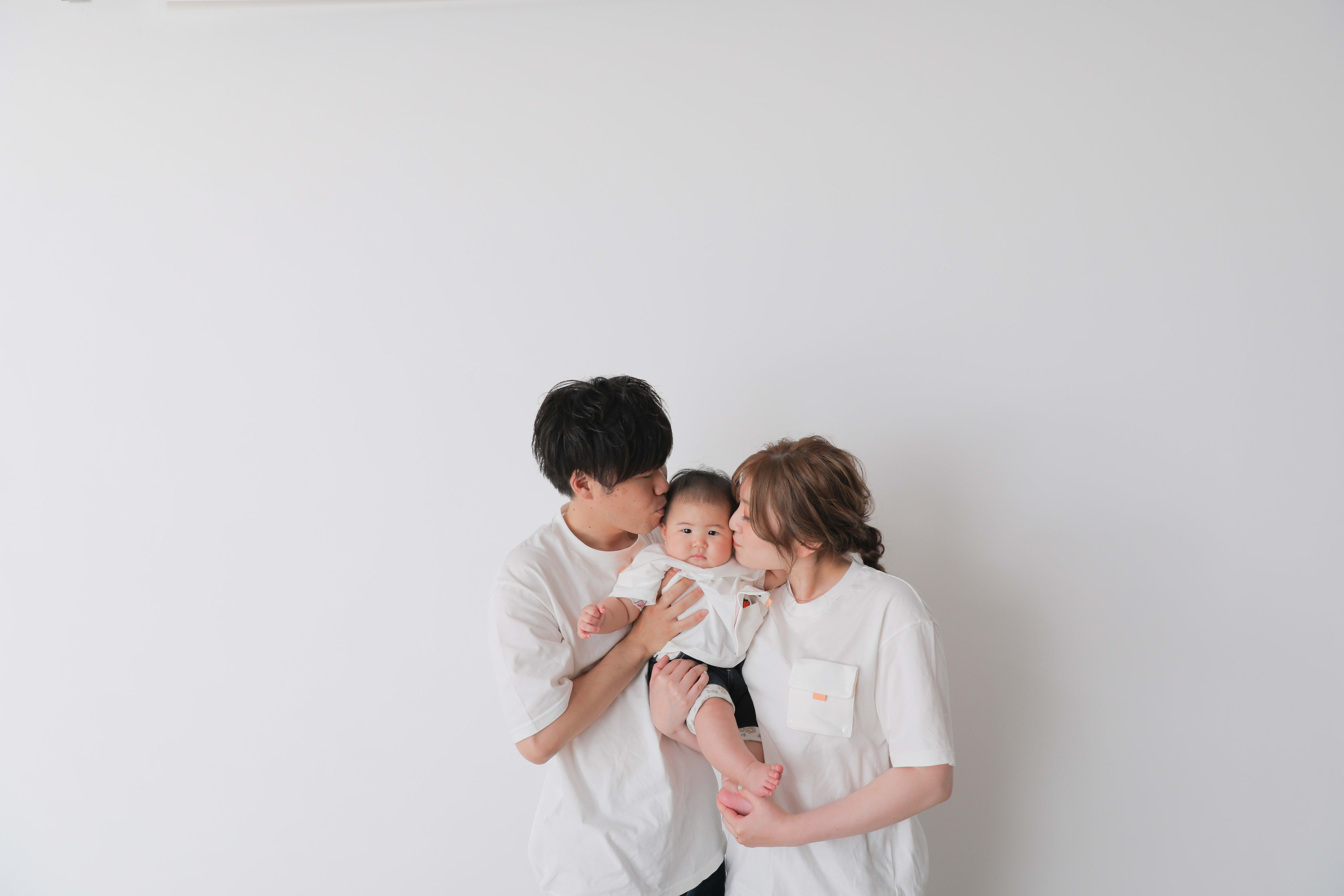 お二人でお子様を抱っこ!その分ぎゅっと距離感も近づきます◎お二人ともとっても良い笑顔!