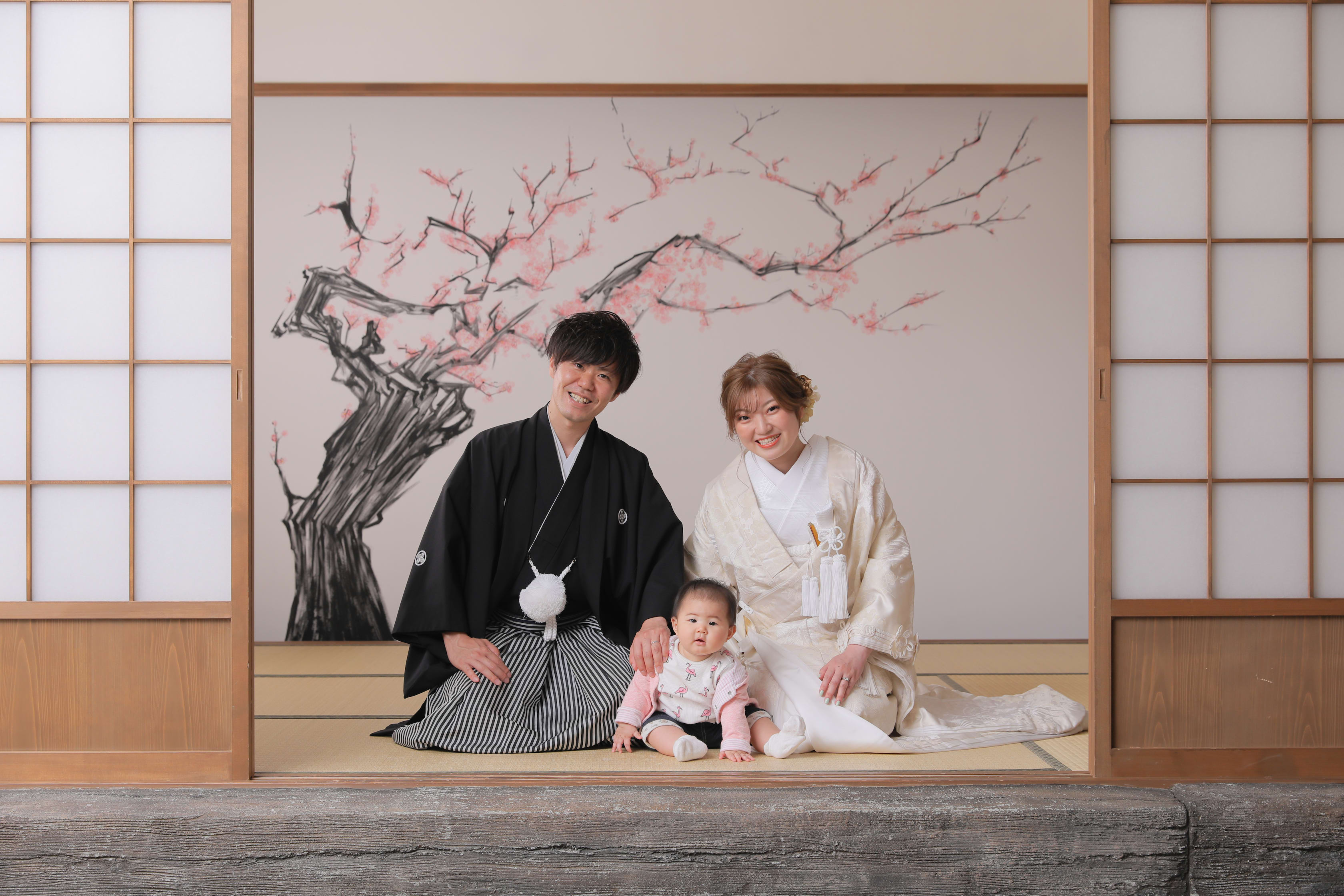 多くの方からご希望いただく正座ショット!ここにもお子様に登場してもらいました◎家族3人仲良しなのがすごく伝わってきます〜*