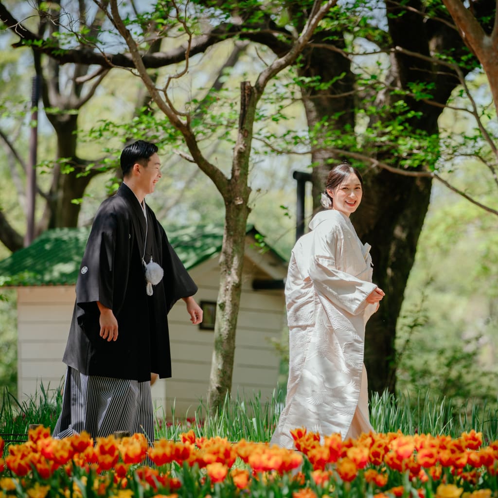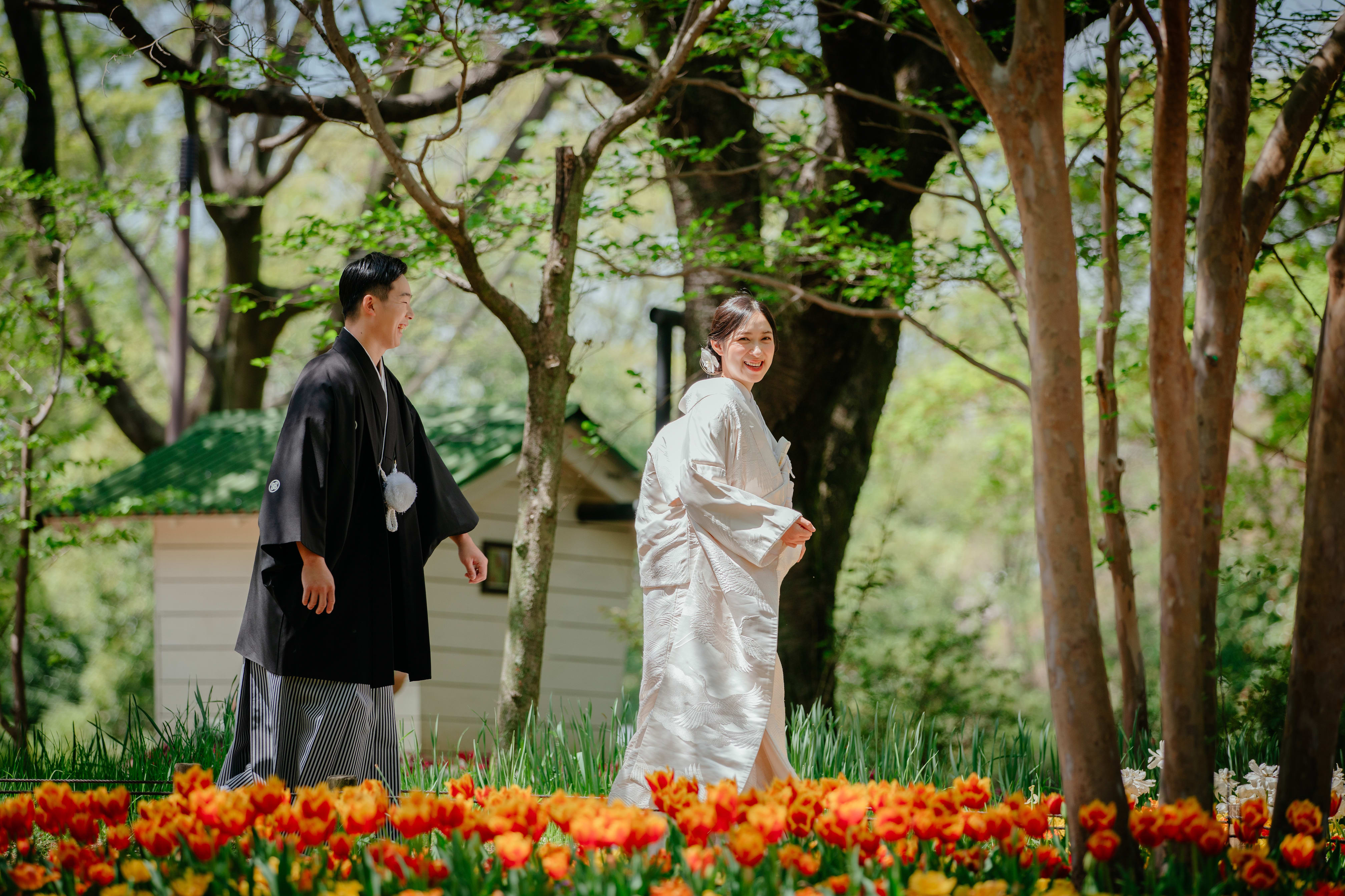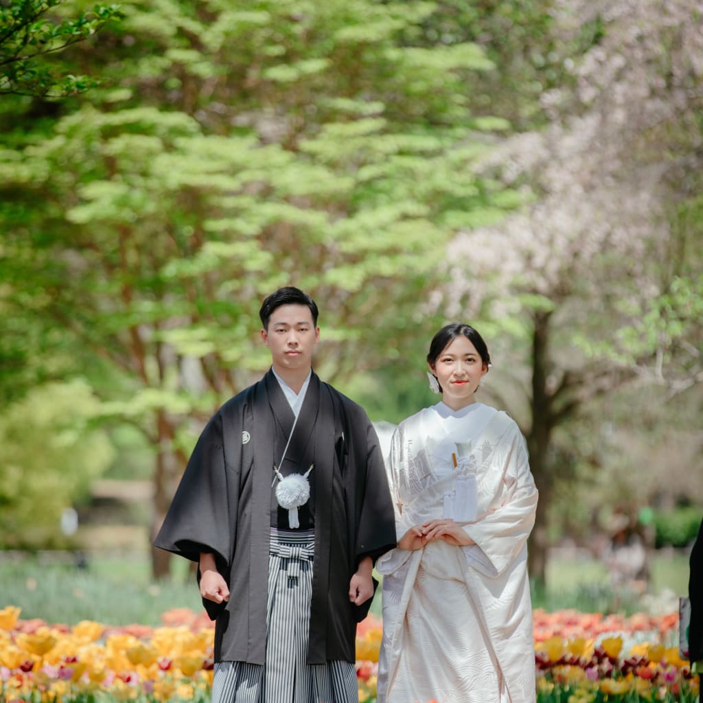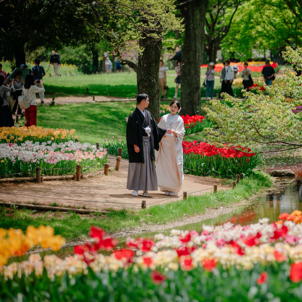 本日は昭和記念公園で和装撮影のご紹介♡ まずはチューリップ♫