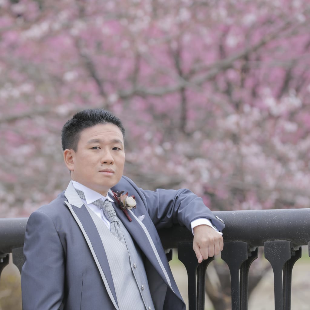 ご新婦様のソロショットを撮影しようとしたら、ご新郎様がひょっこりはん!