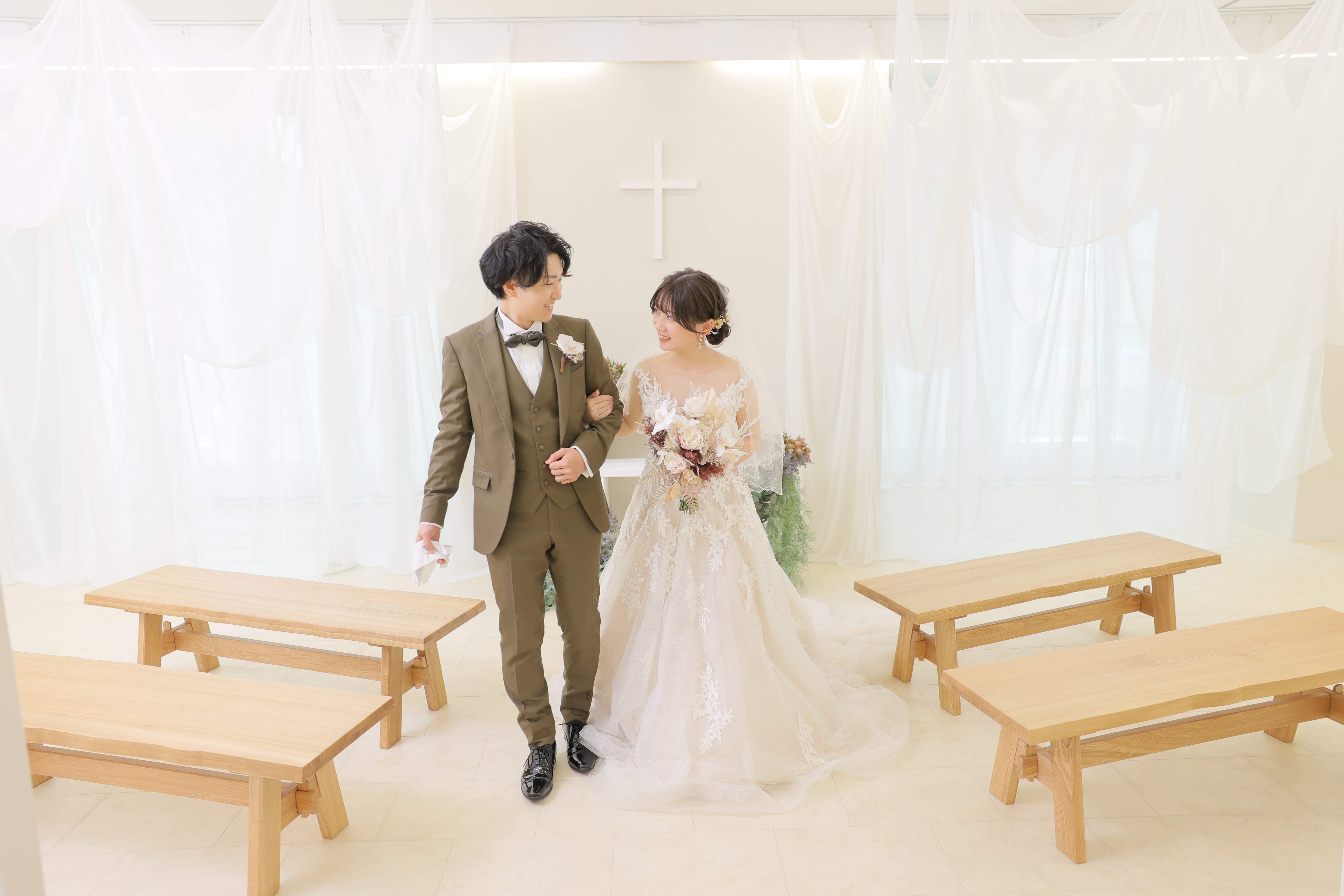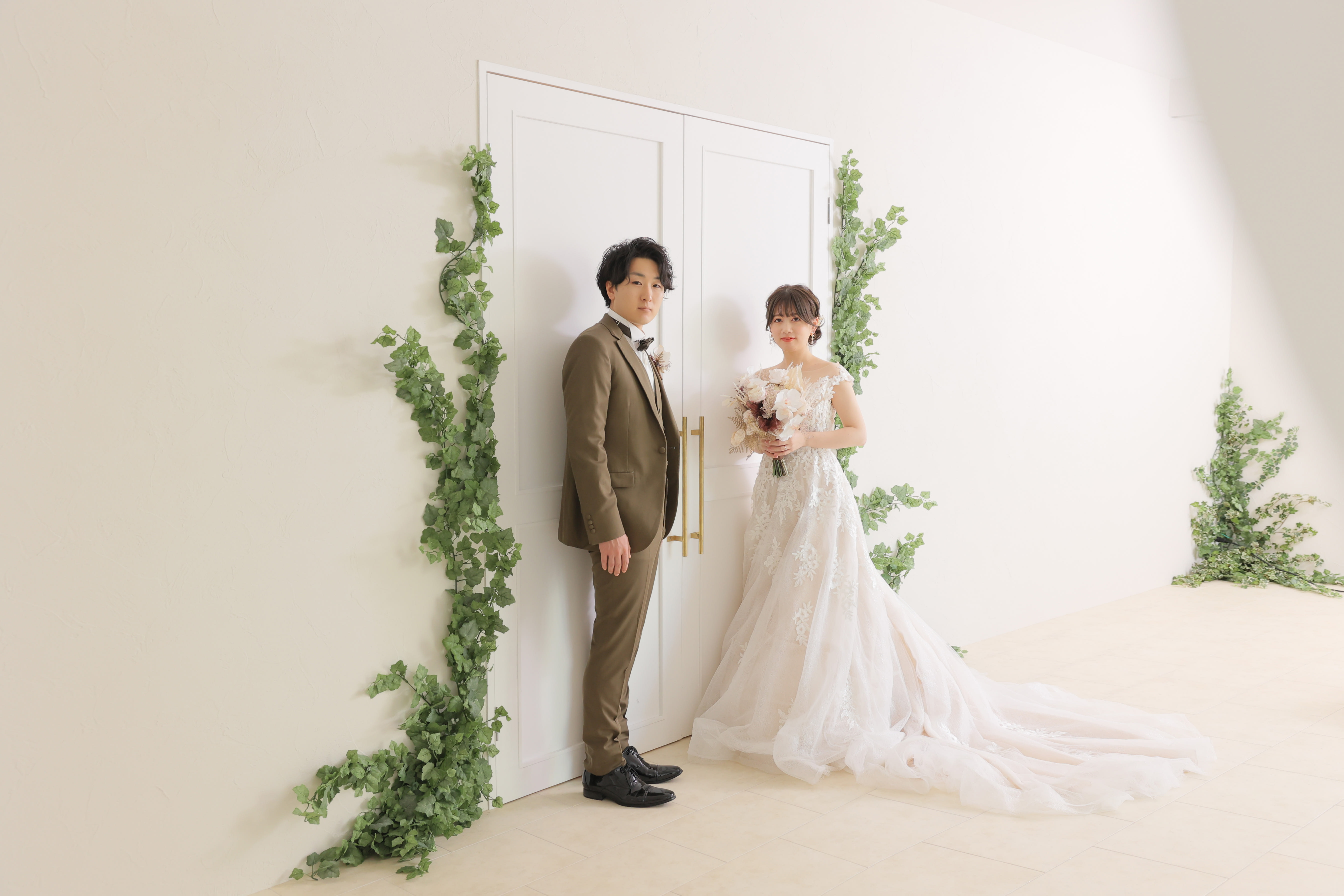 チャペルの扉の前で、準備万端のおふたりをパシャリ!!