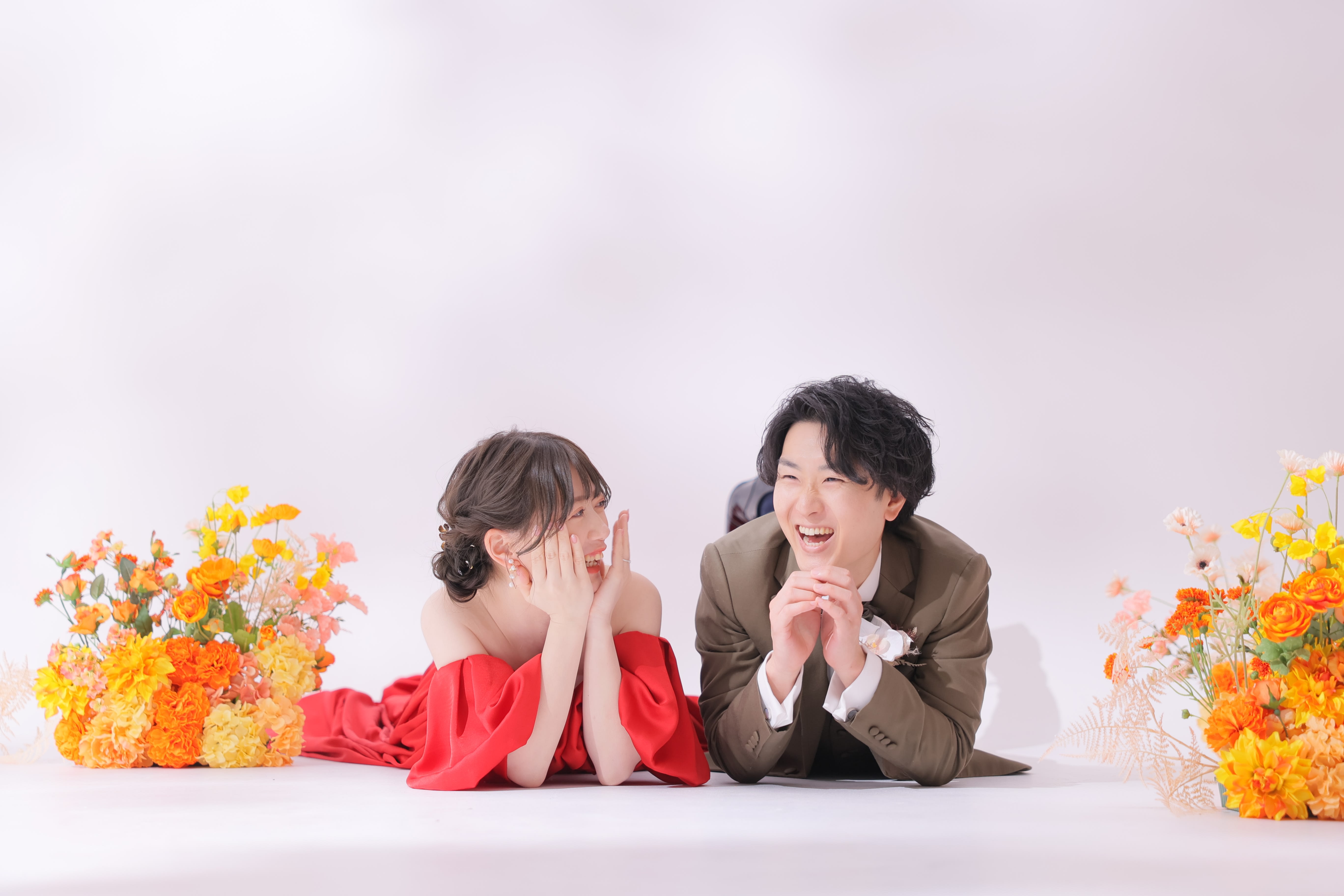 最後は、おふたりとも寝そべっちゃいました♪ 楽しさから最後は本当にリラックスをした微笑ましいおふたりを撮れたとこで、無事撮影を終えました!!