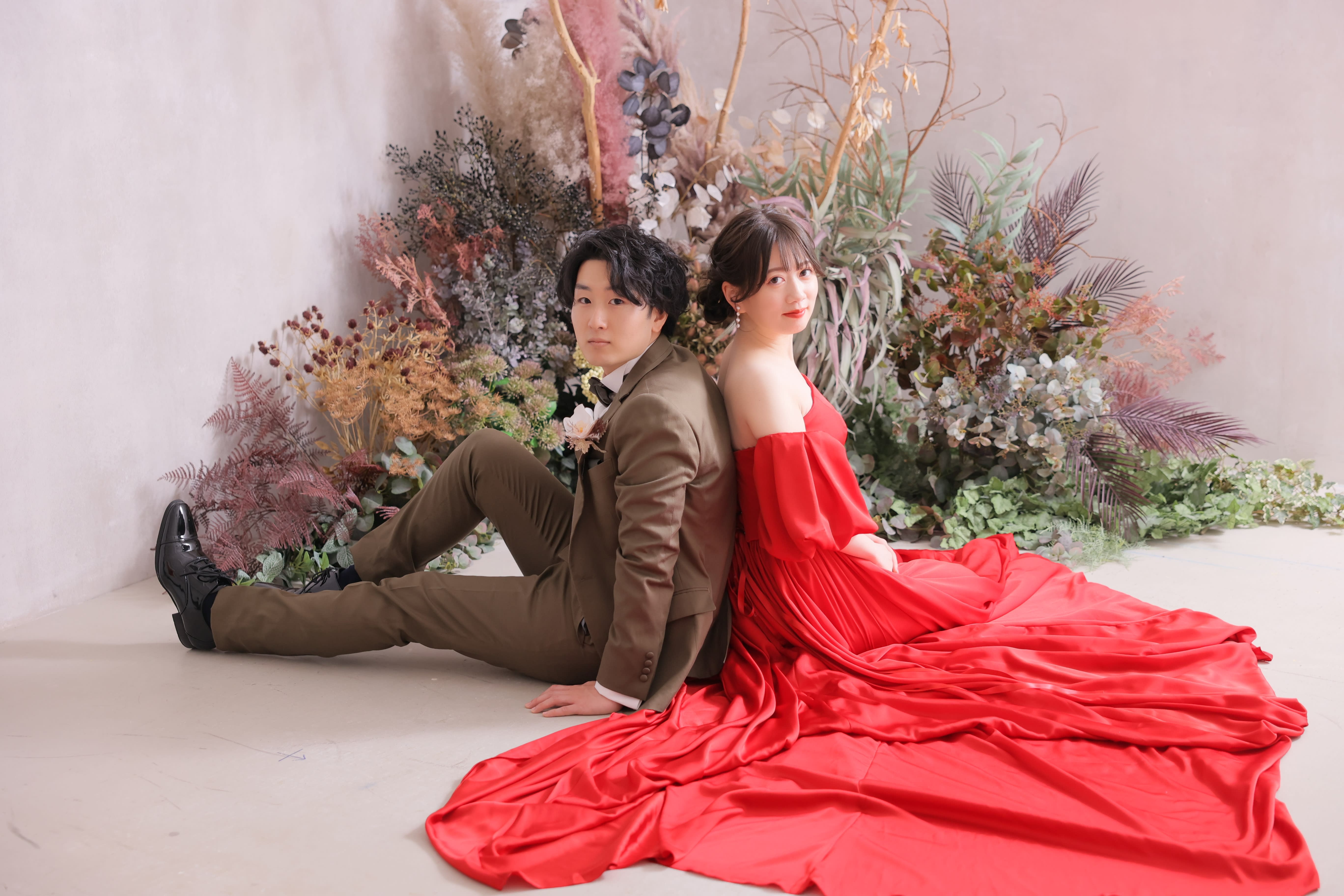 スタジオを移動!それと同時に新婦様はドレスチェンジしてました♪赤のドレスもとてもお似合い!!