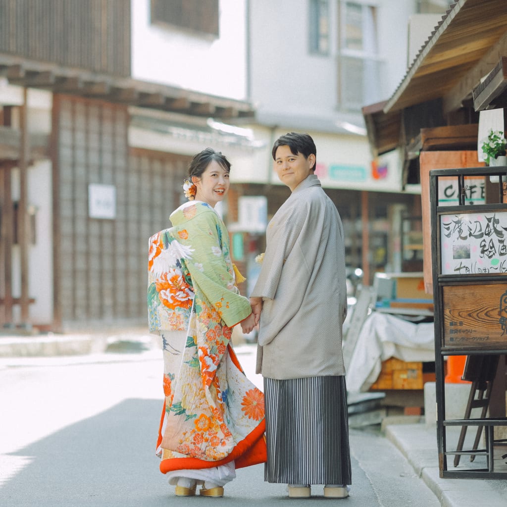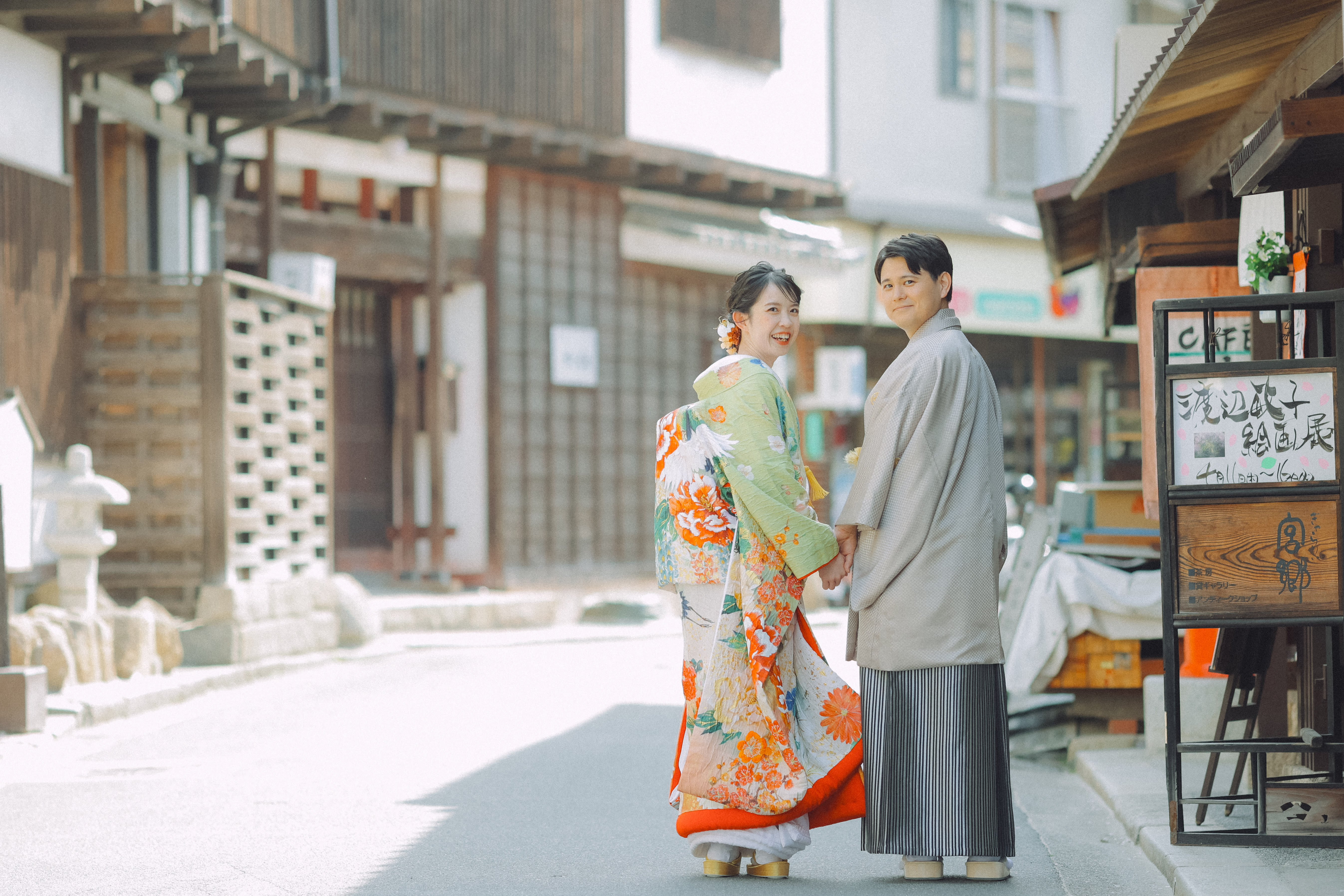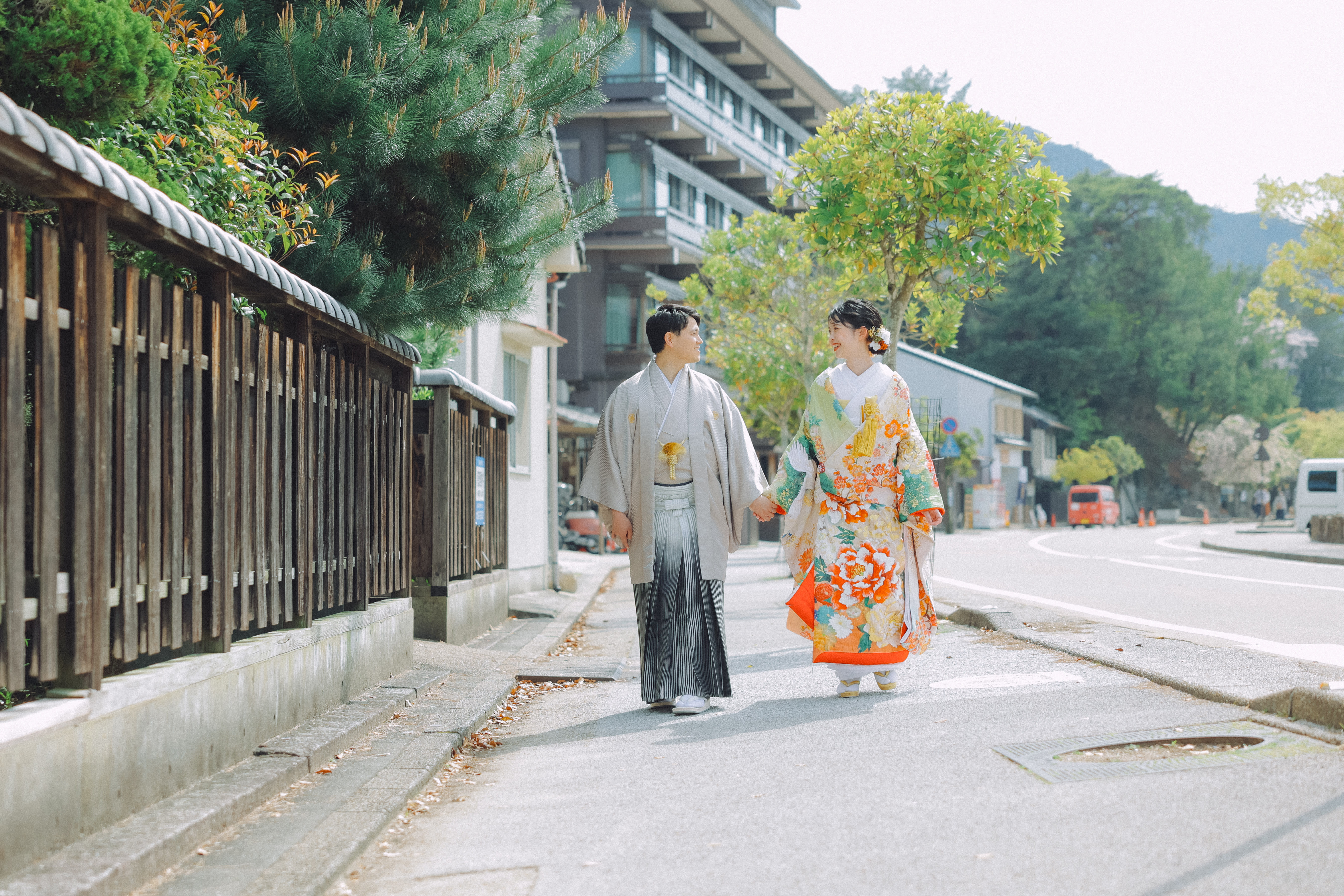 手を繋いで、まずは宮島周辺を散策中のおふたり!!会話しながらどこか楽しげな表情♪