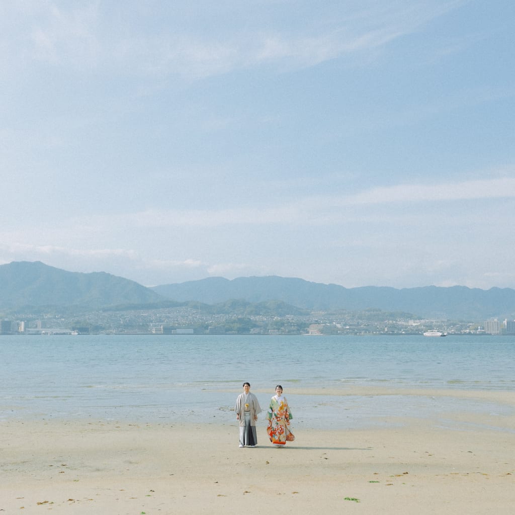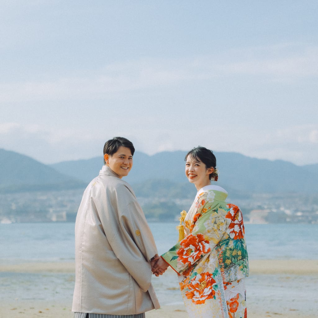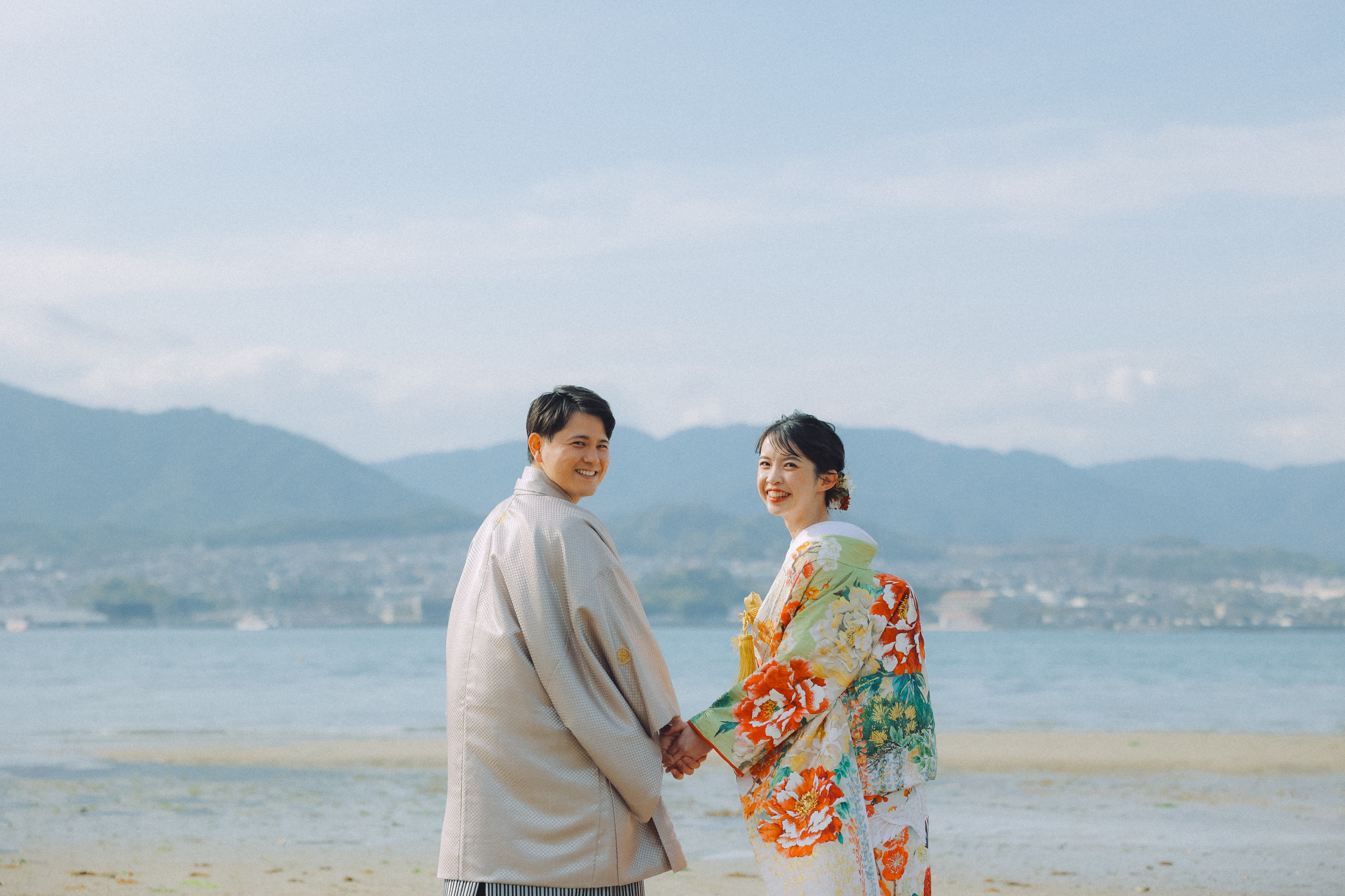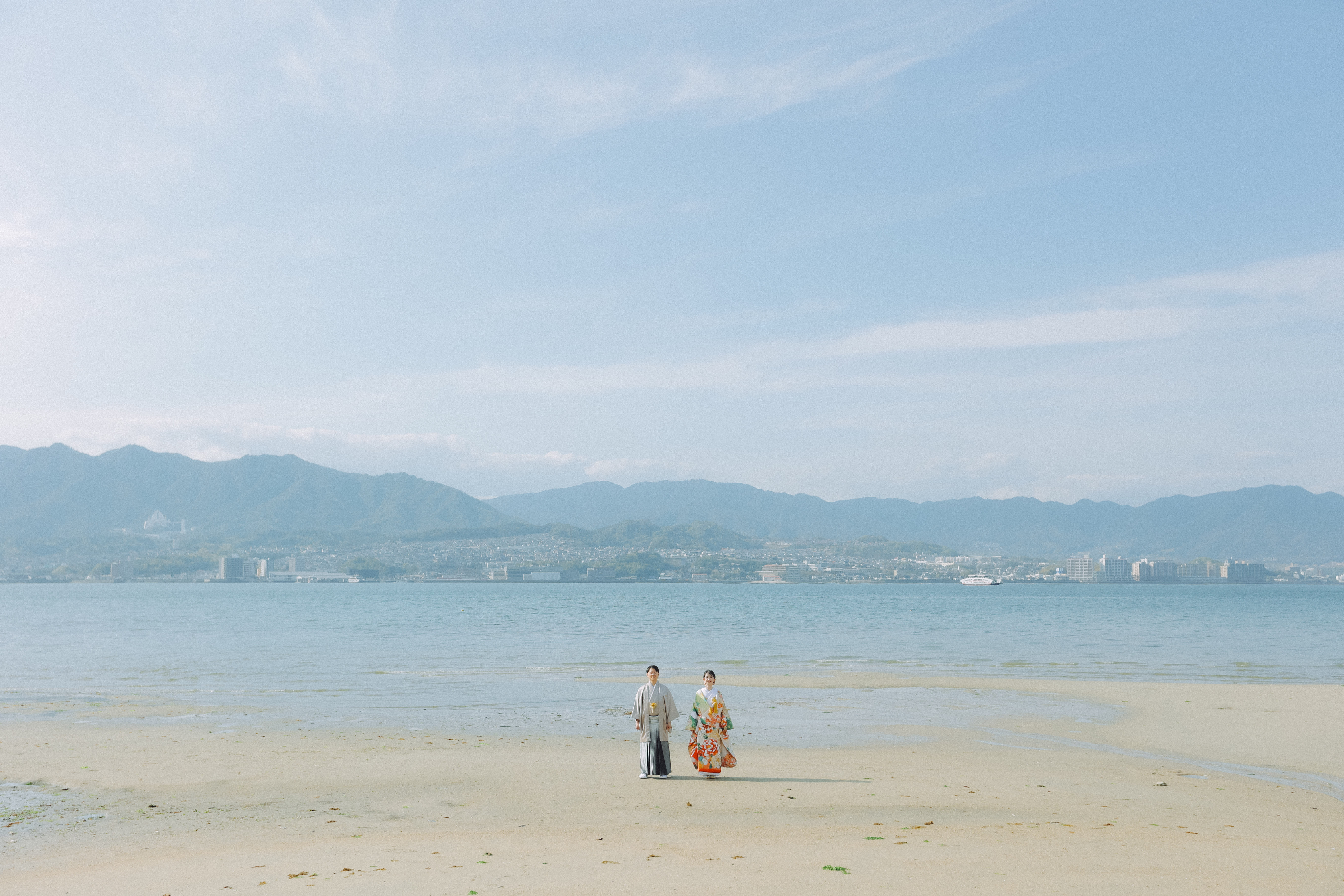 最後は、キレイな宮島に渡る海とともにパシャリ!!おふたりの宮島の旅を無事終えることができました♪