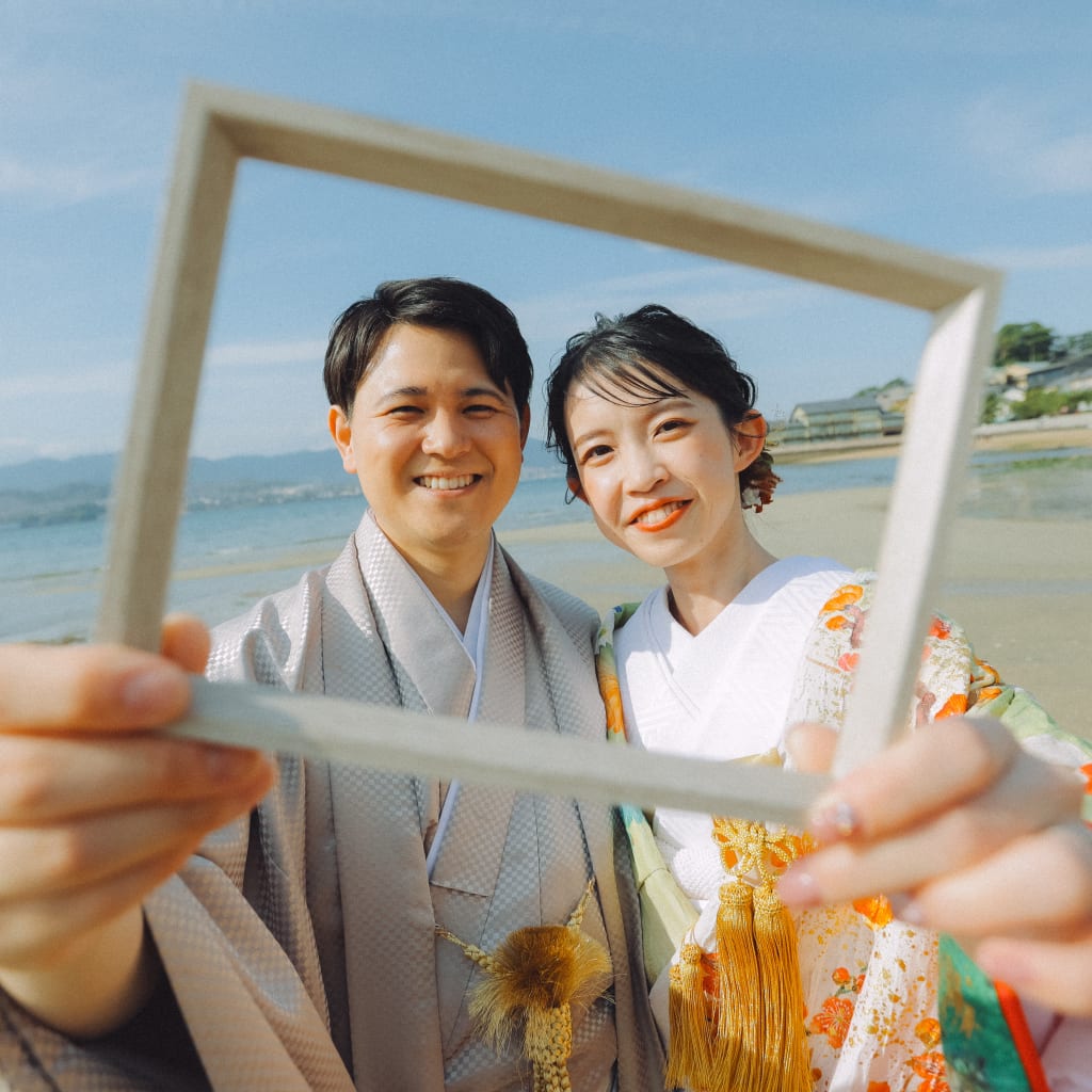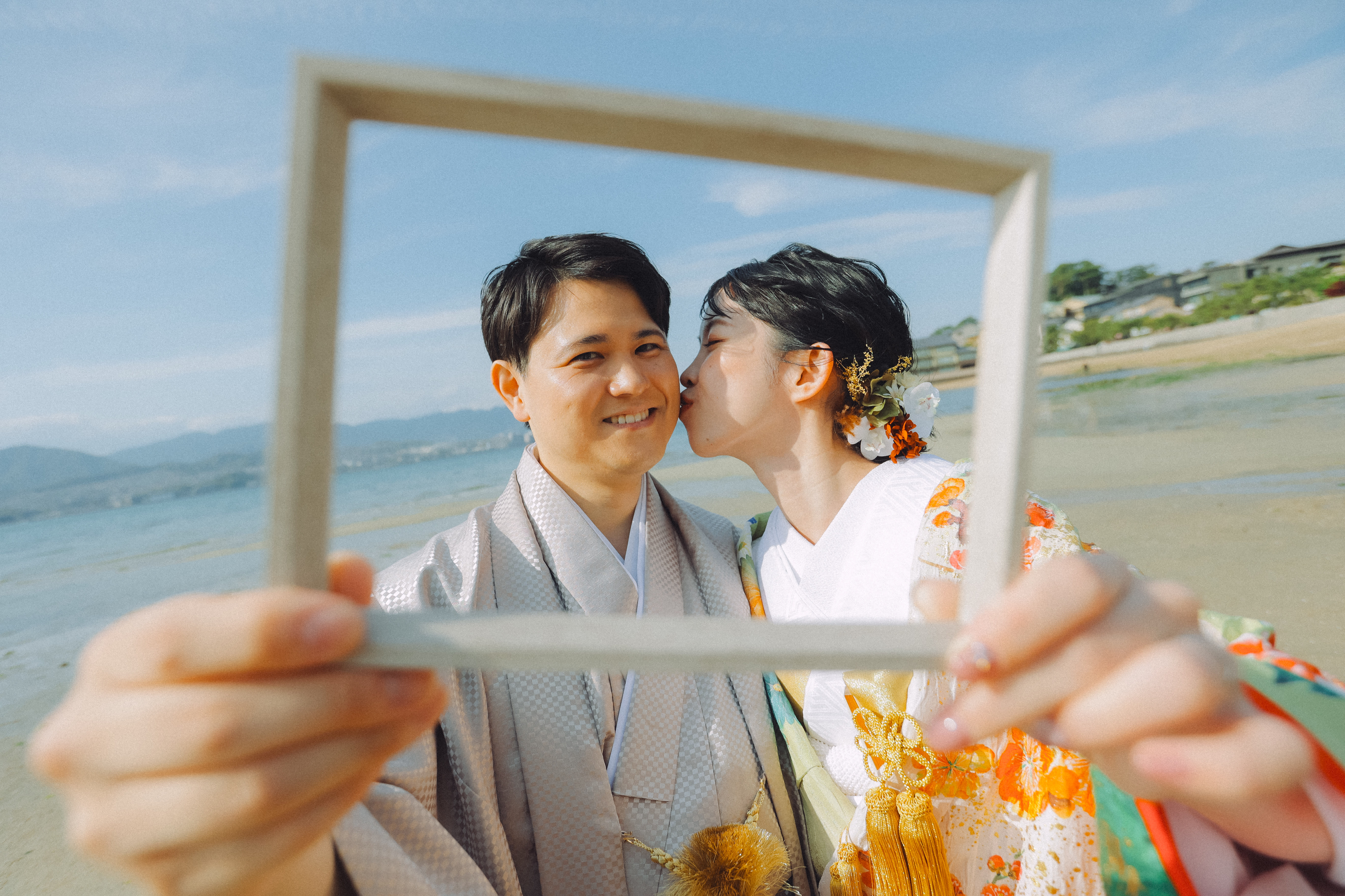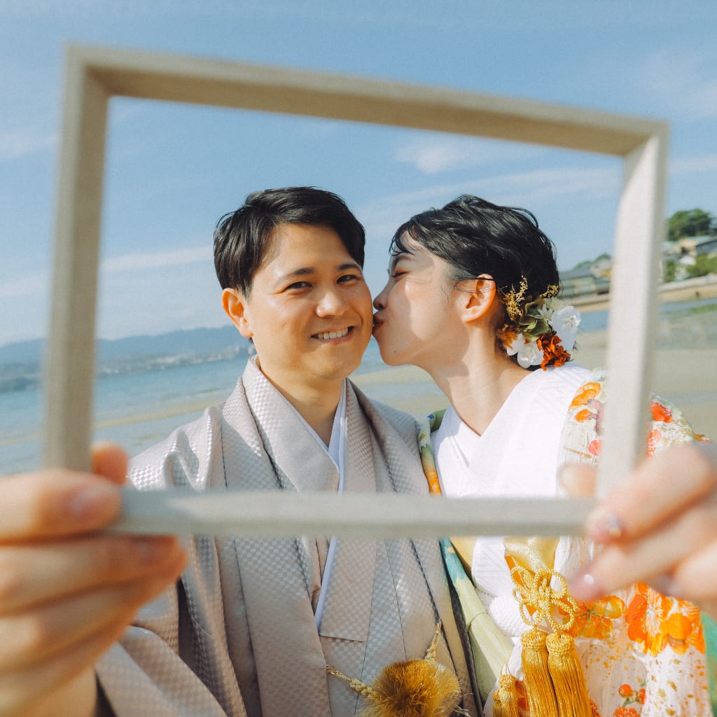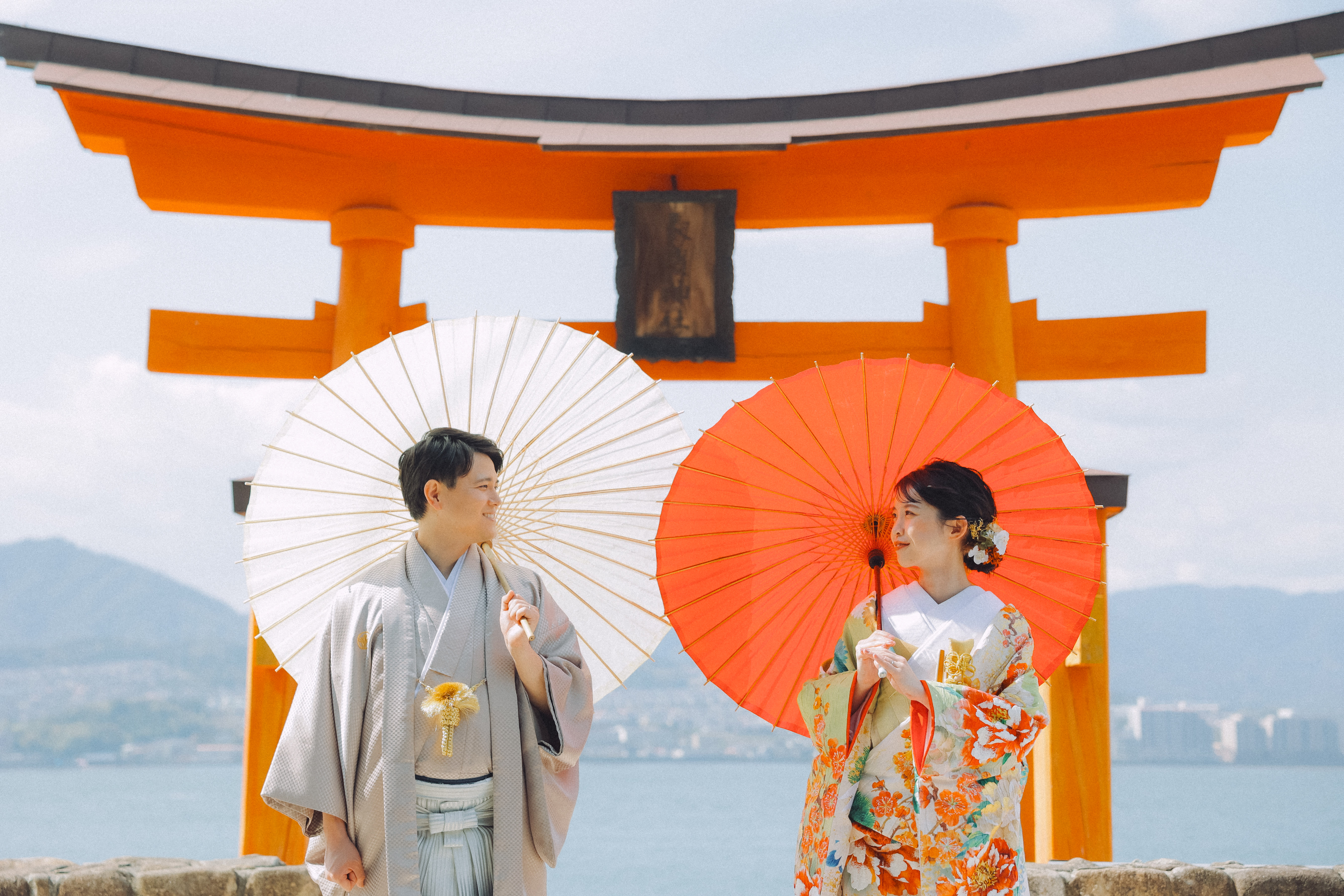 最後は、キレイな宮島に渡る海とともにパシャリ!!おふたりの宮島の旅を無事終えることができました♪