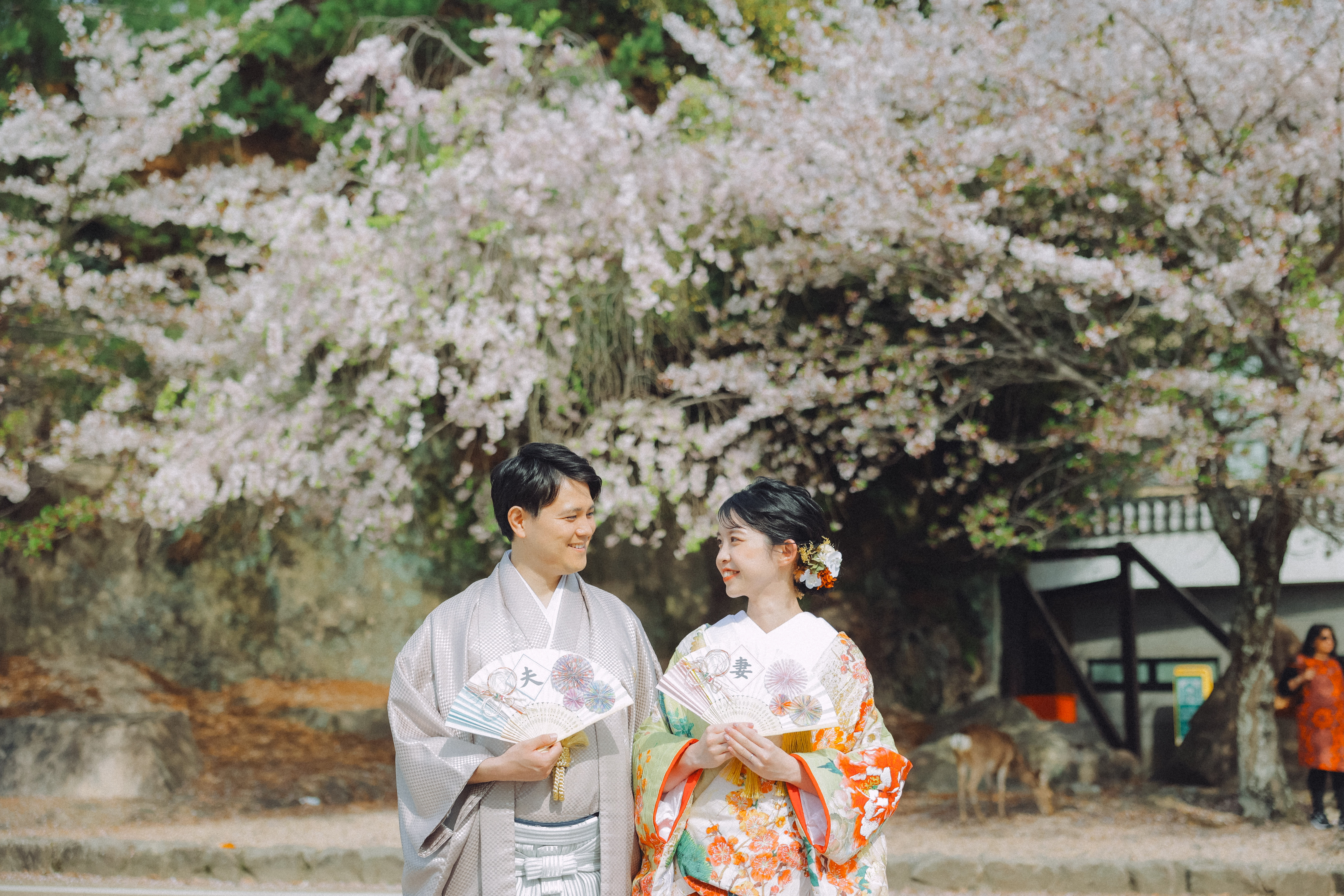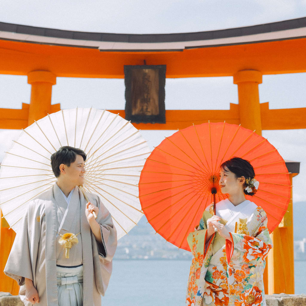 鳥居の前で、おふたり顔を合わせご挨拶!!宮島を満喫する準備バッチリですね♪