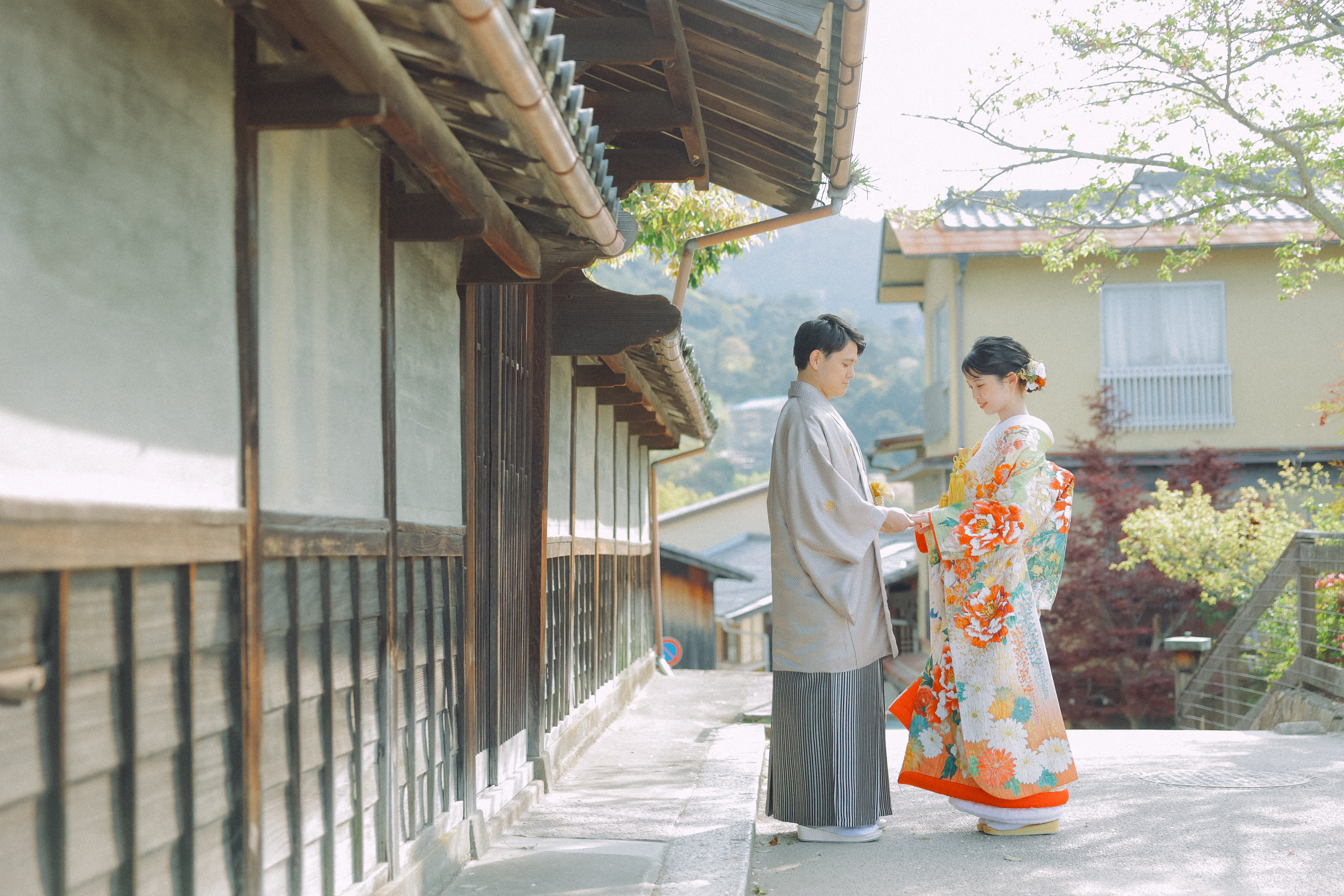 キレイな桜の下を後したおふたりが道中に、和を匂わせるようないい裏路地を発見!! 手を繋ぎ合い、一気におふたりのムード!?