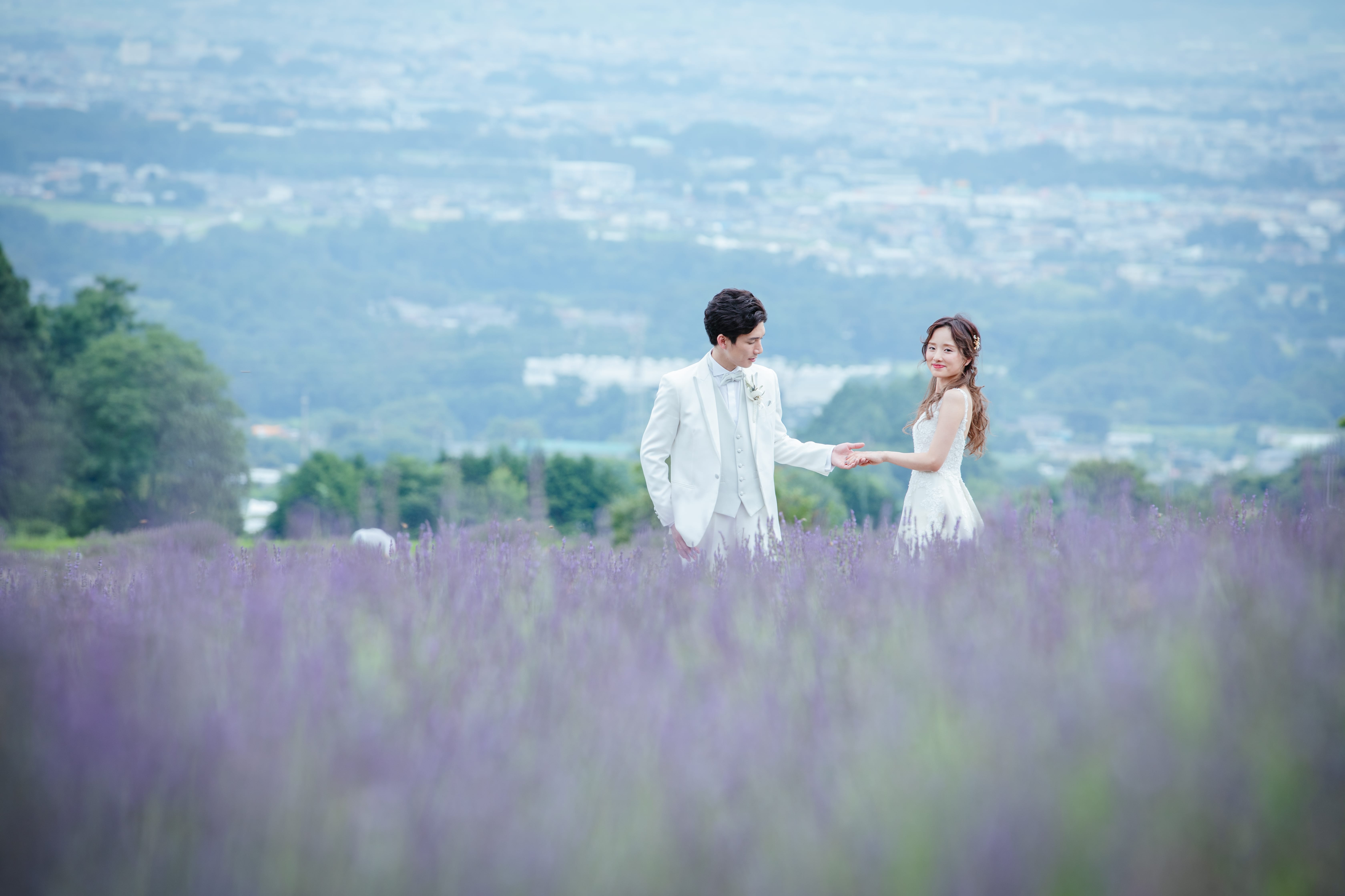 軽井沢で残せるラベンダーとのウエディングフォト♡