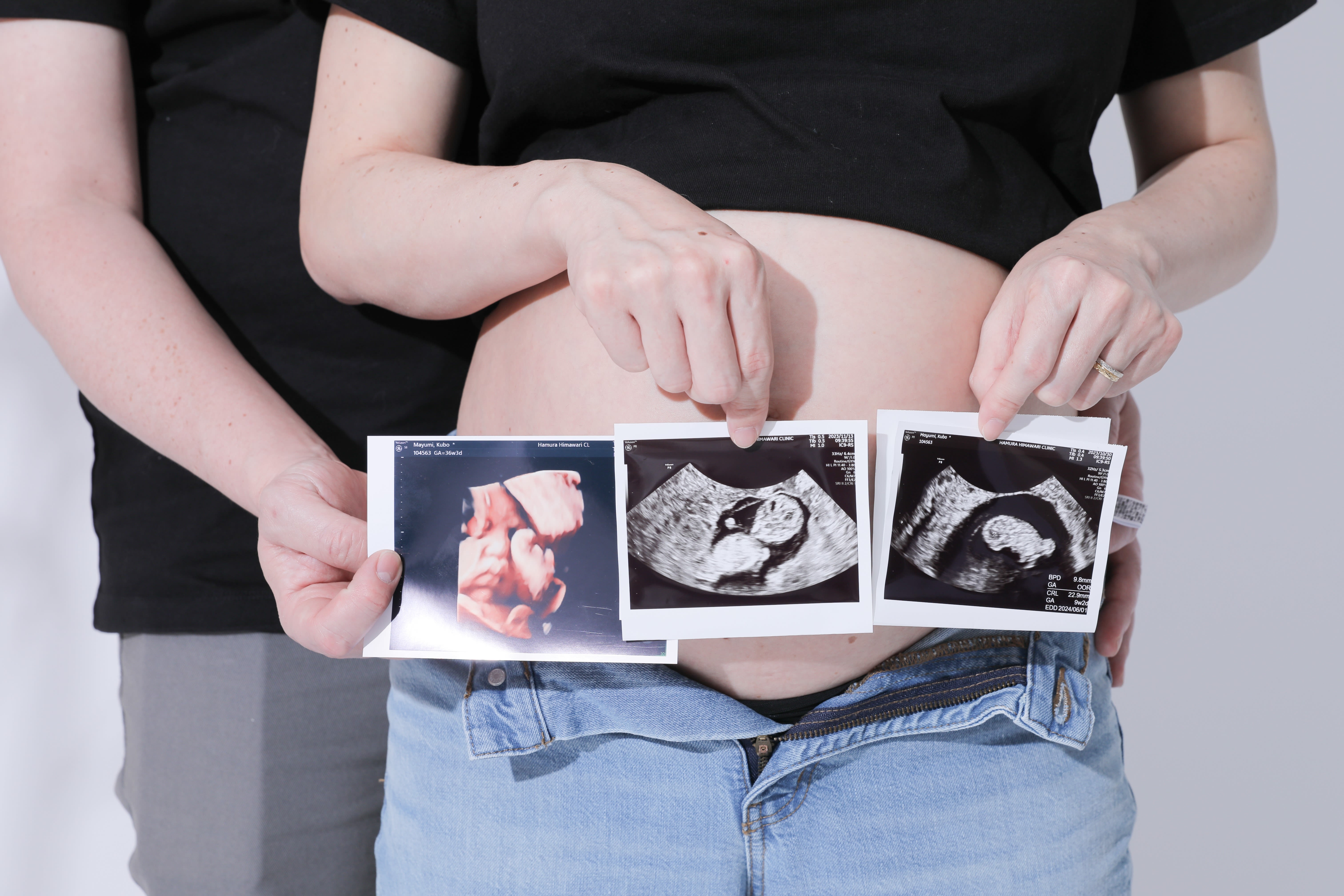 お腹に頬を当てていただいた可愛い1枚!お二人の優しい笑顔がとっても素敵でした!!