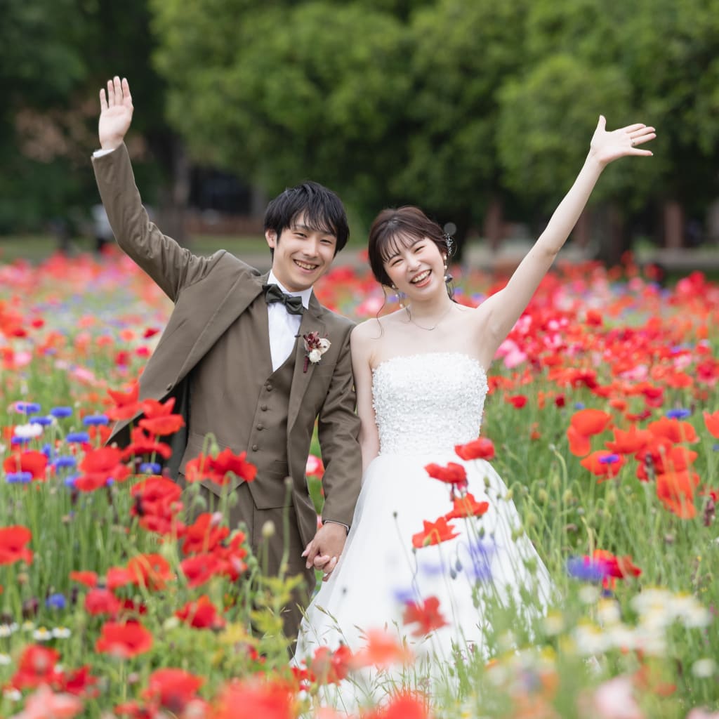 本日は昭和記念公園のロケーションとスタジオ撮影のご紹介です! まずはブーケガーデンで撮影スタート♫ 色とりどりのお花に囲まれて♡