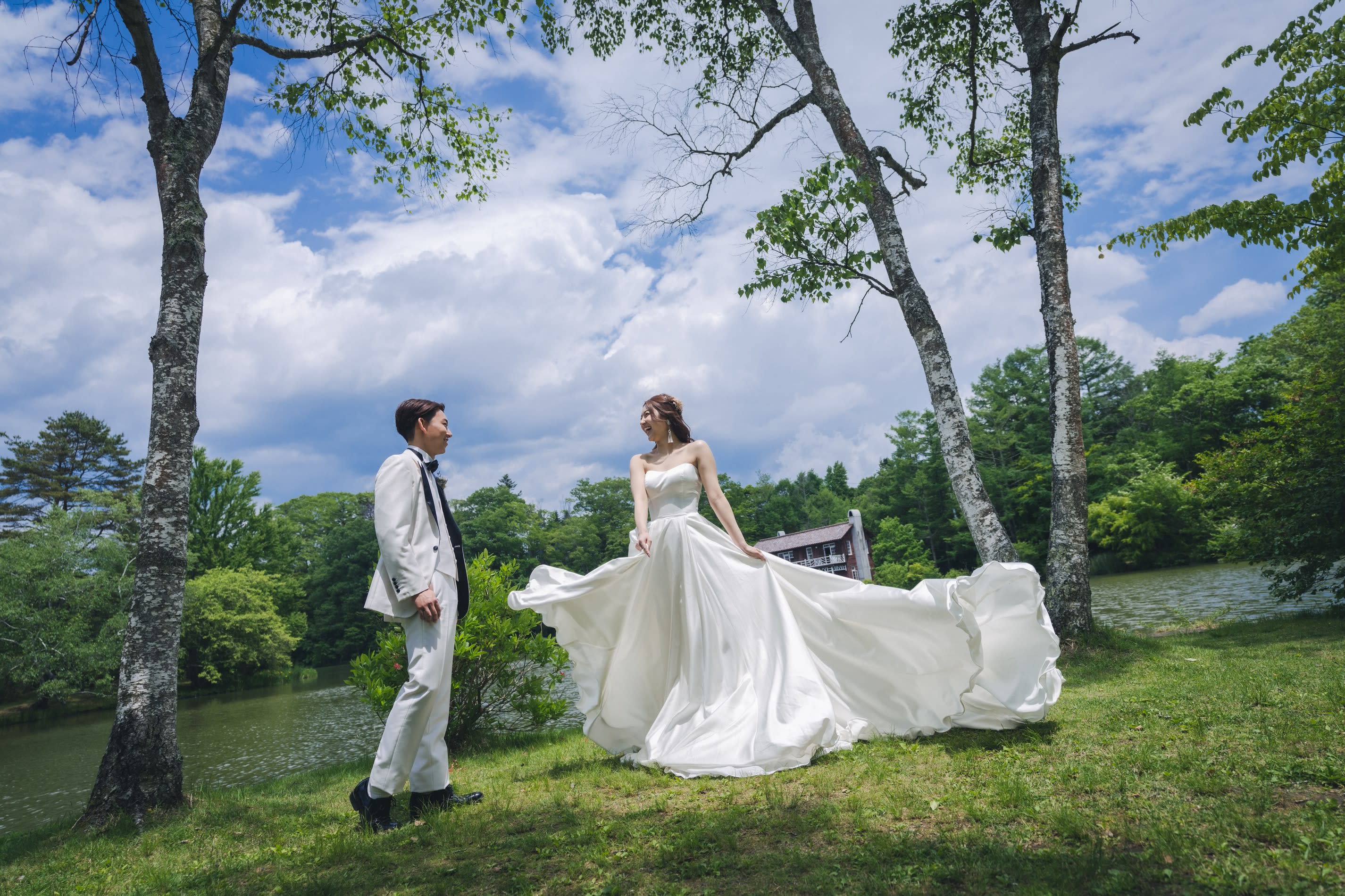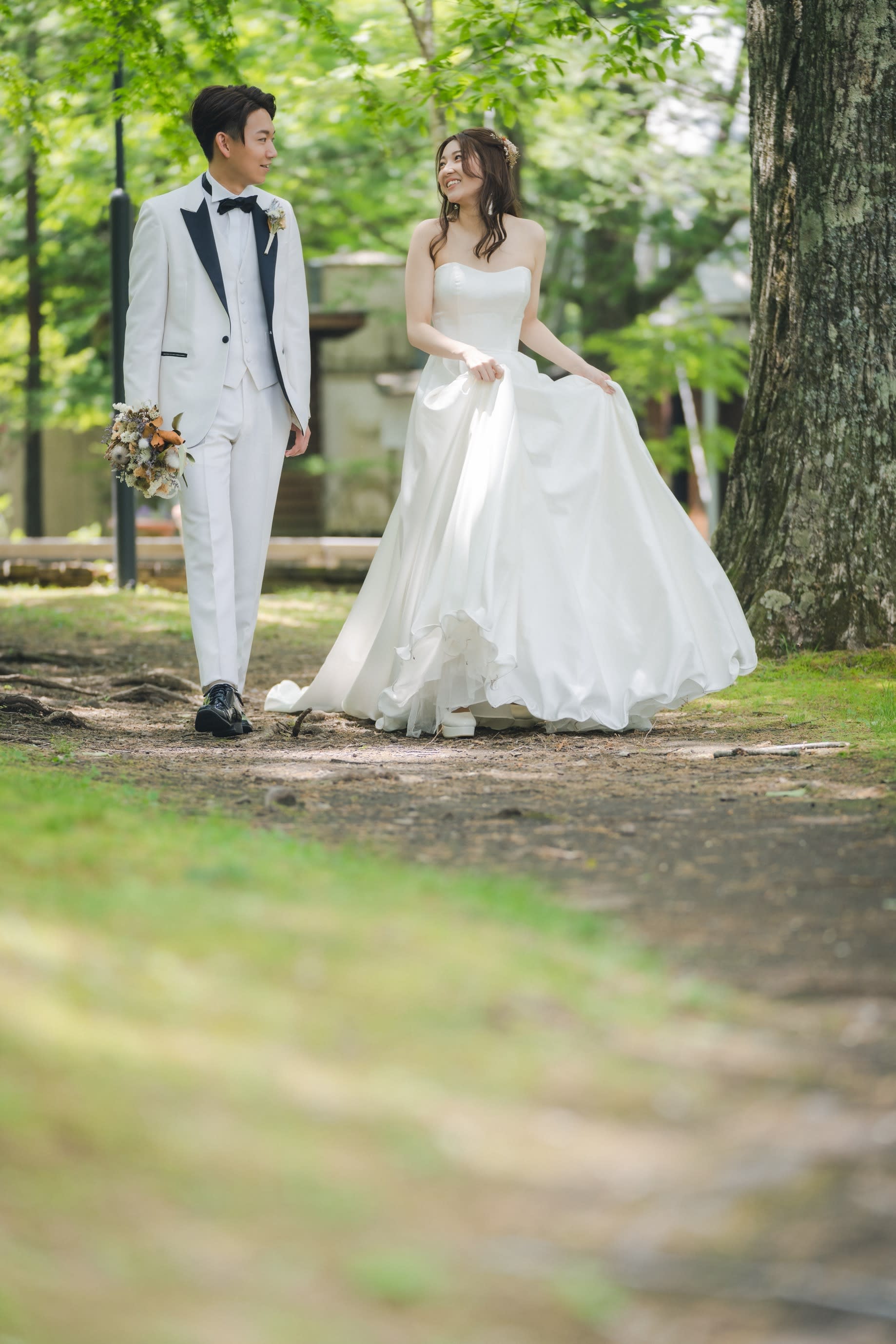 ウェディングドレスを着て、軽井沢での撮影を満喫できるボリュームプラン。