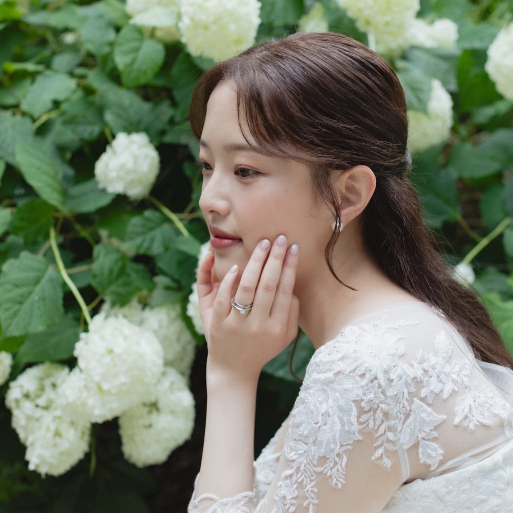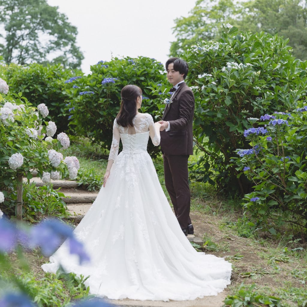 まずは紫陽花のご紹介♫ ブーケと紫陽花の色味が相性ぴったり◎