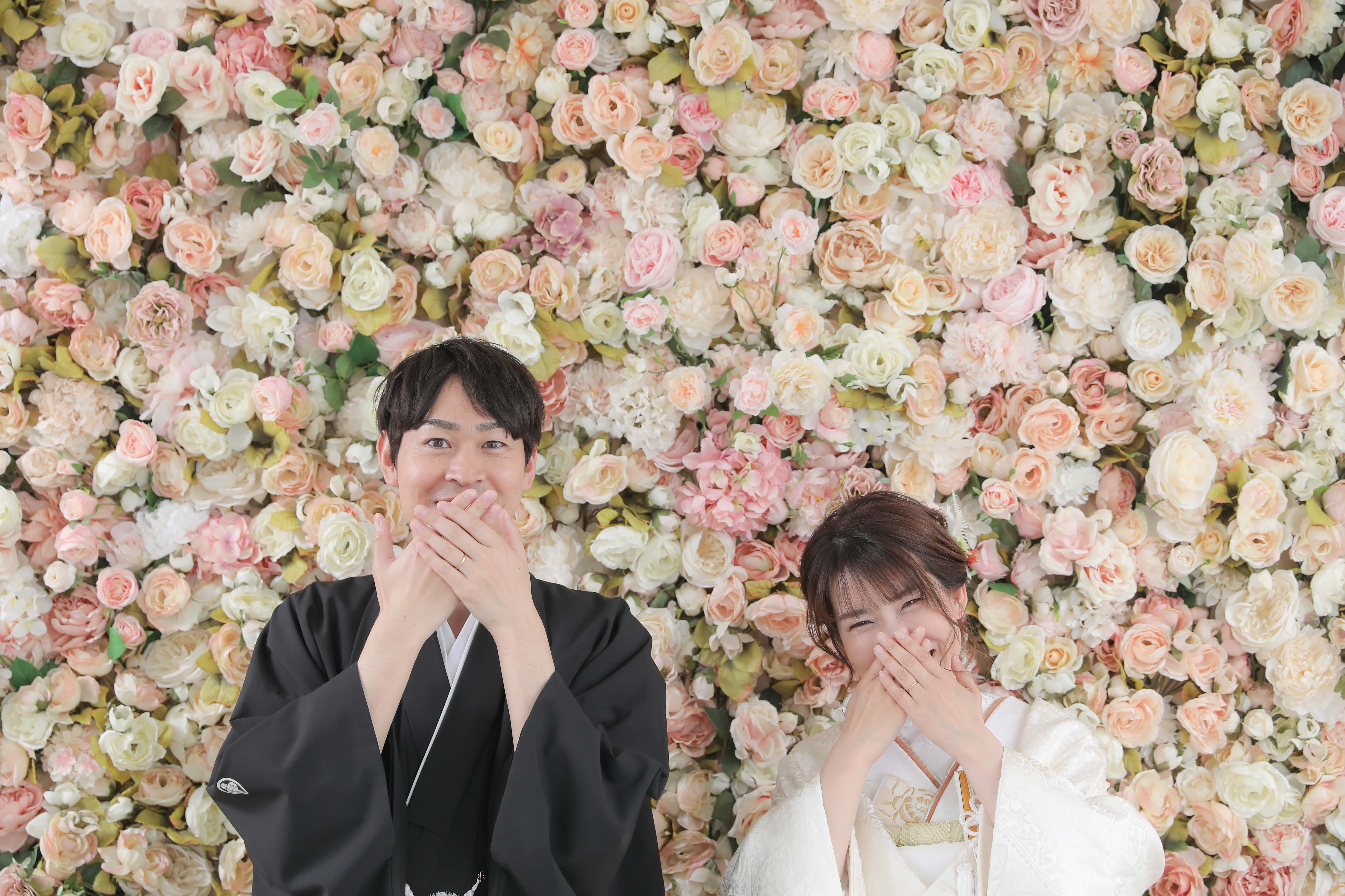 淡い色味のお花に囲まれて、お二人の幸せオーラ溢れる1枚ですね!せっかくの機会だからこそ可愛らしいポーズもしちゃいましょう♪