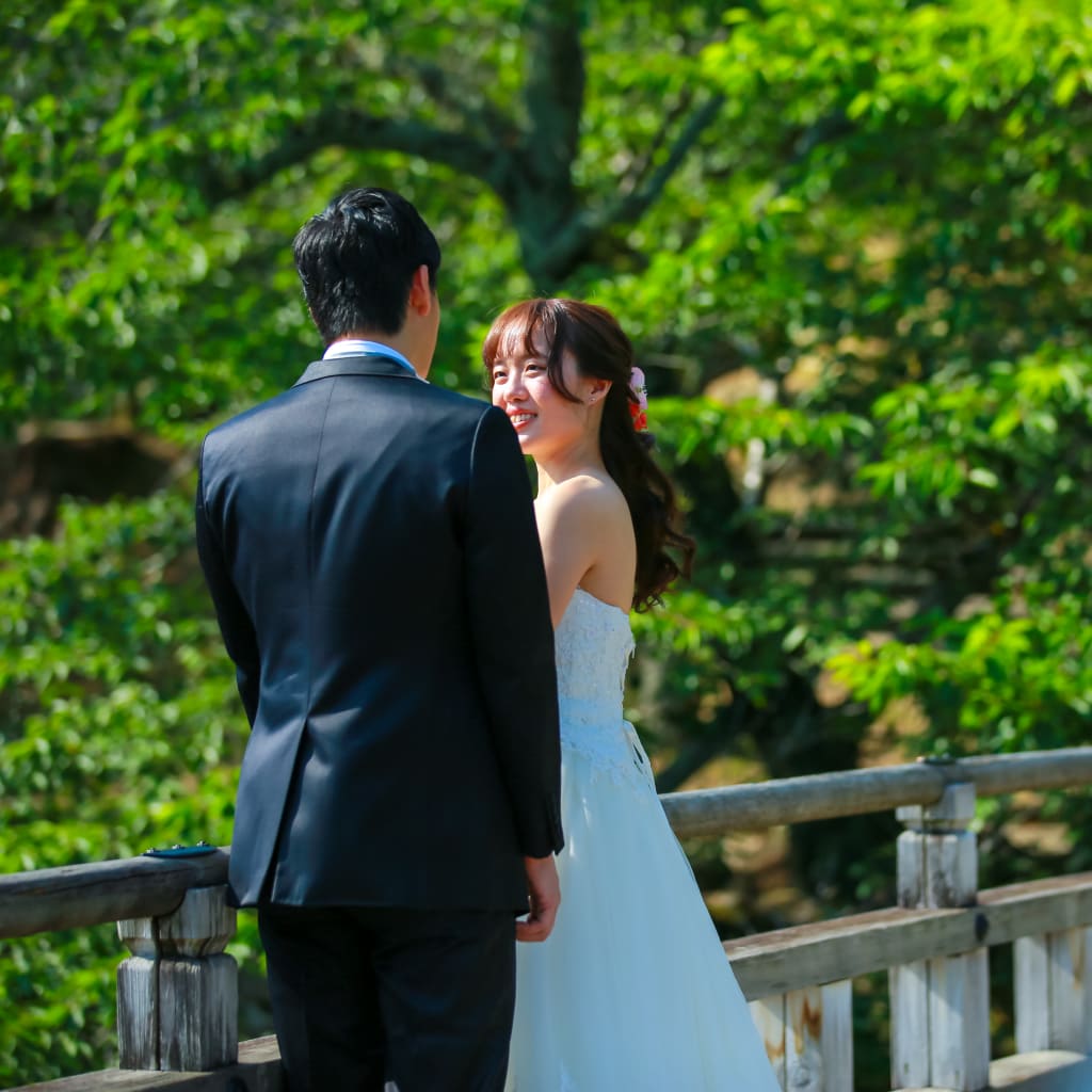 遠くに見える新緑、お二人も楽しそうなフォトウェディングになりました。大阪からすぐの奈良でも楽しめますよ。
