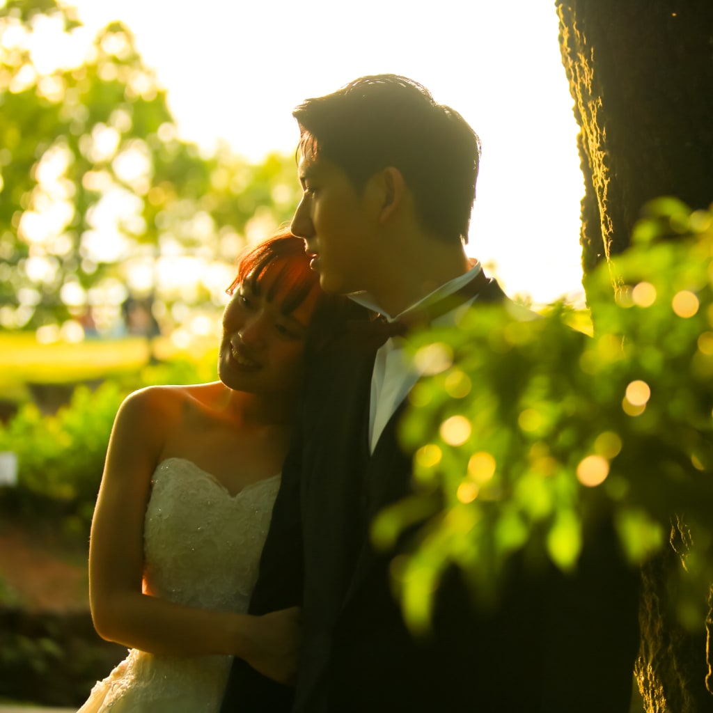 リラックスしたお二人の自然なフォトウェディング。若草山のサンセットをとても喜んでくれていました。