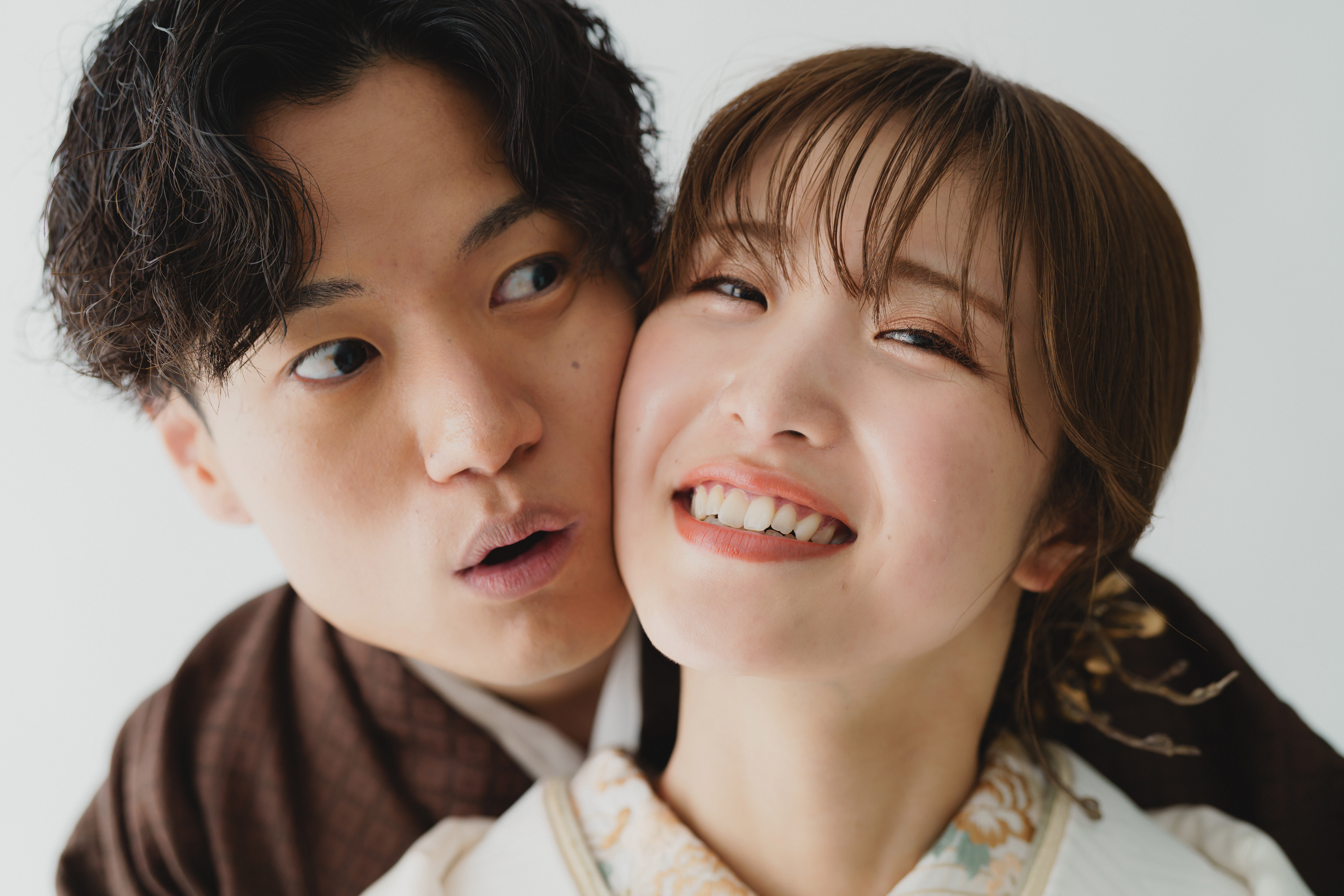 無地の背景で2人が好きなこと、僕が好きなこと全部やりましょ!