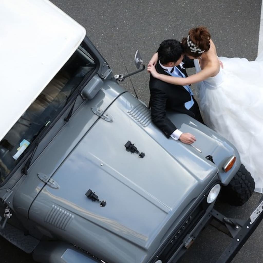 お打ち合わせ担当させていただいた際に、イルミネーションが輝く街中での撮影や、結婚を機に手放す、新郎様の愛車との撮影など、おふたりのご希望をたくさんいただきました。