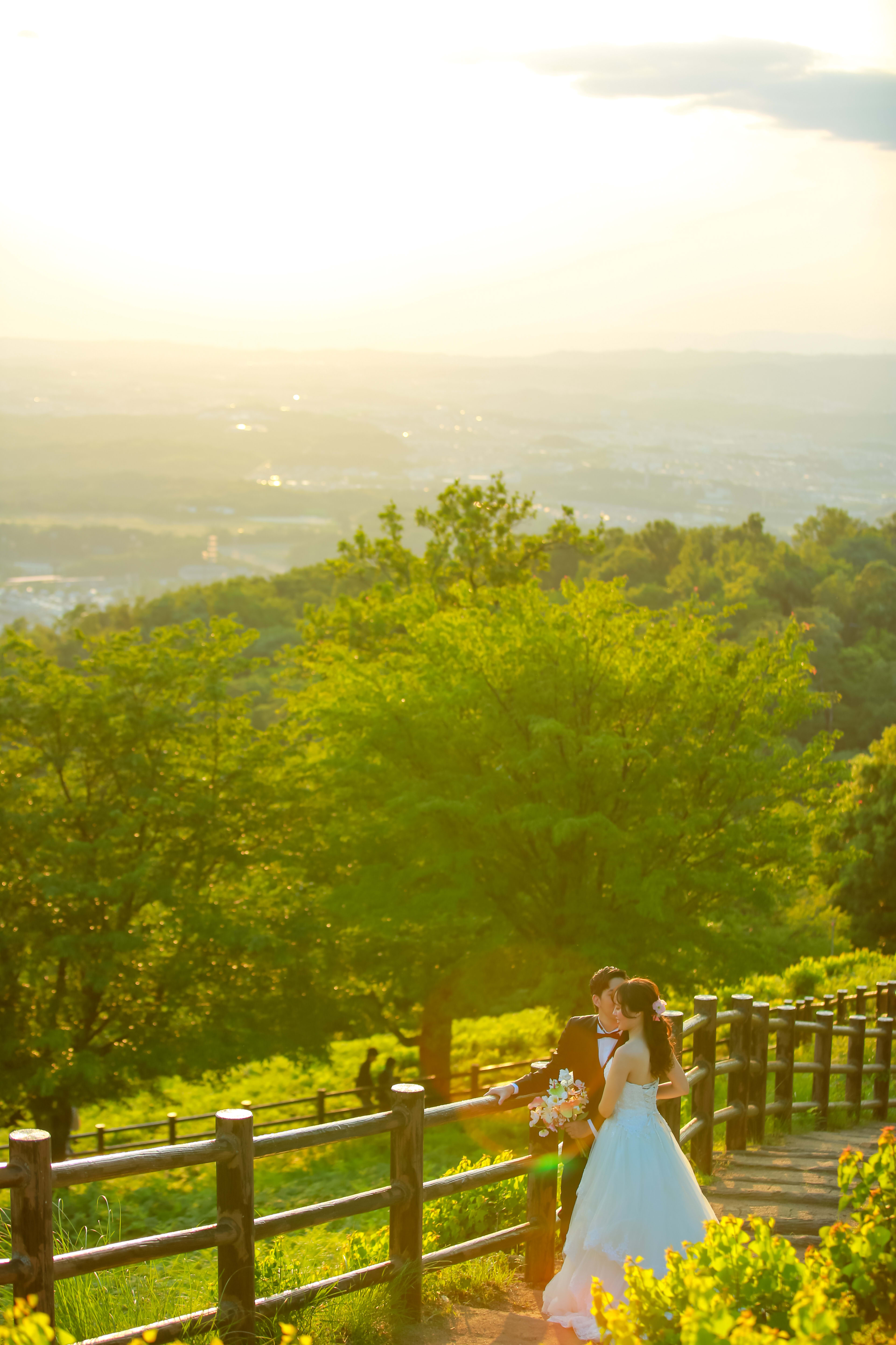 お二人のウェディングフォトを夕焼け色に染め始めていました。大阪からのすぐに行けちゃう奈良の若草山のサンセットはとってもきれいです!