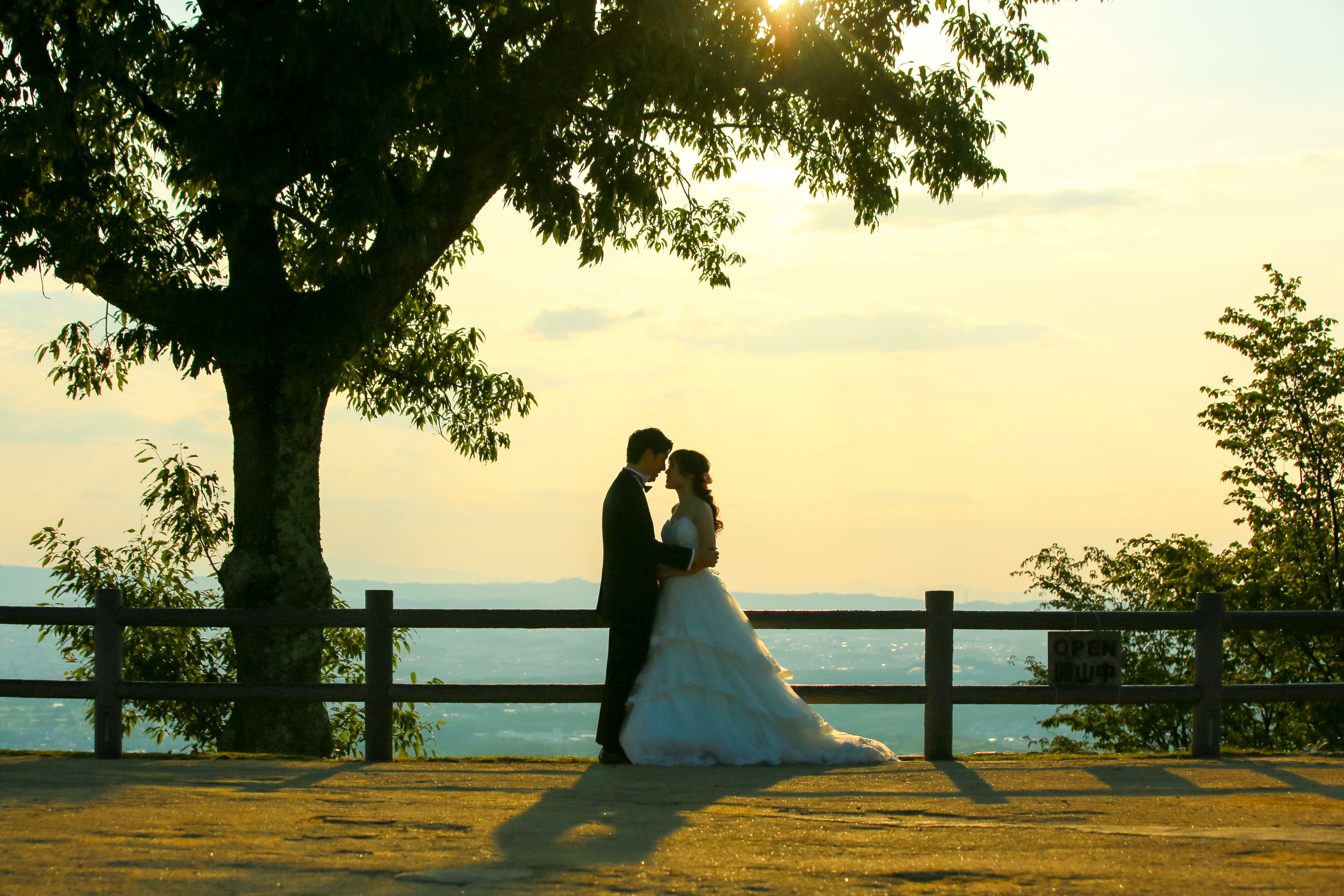 シルエットに仕上げて、お二人を姿をドラマティックに写し撮れました。大阪から小一時間の移動で撮影できるフォトウェディングです。