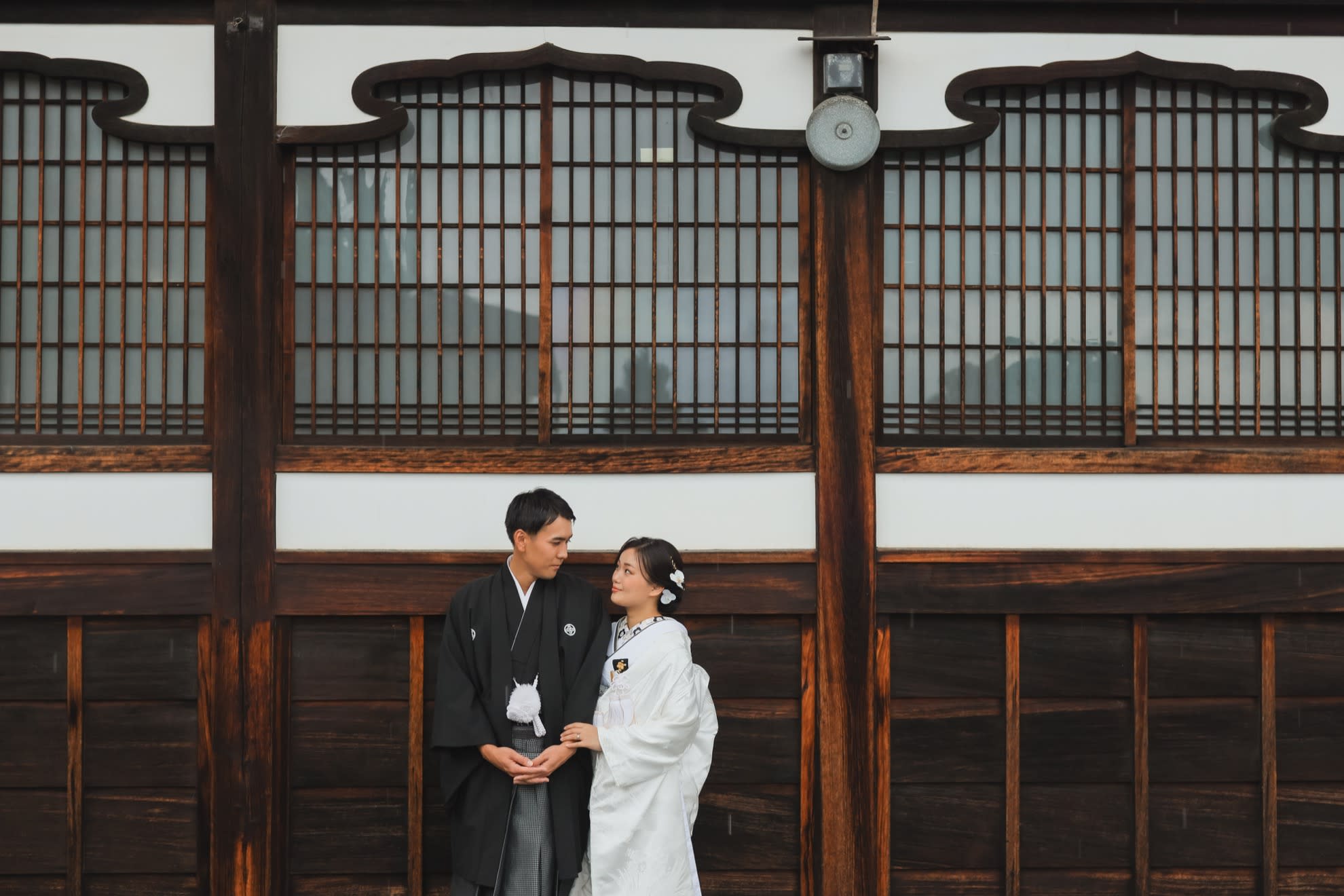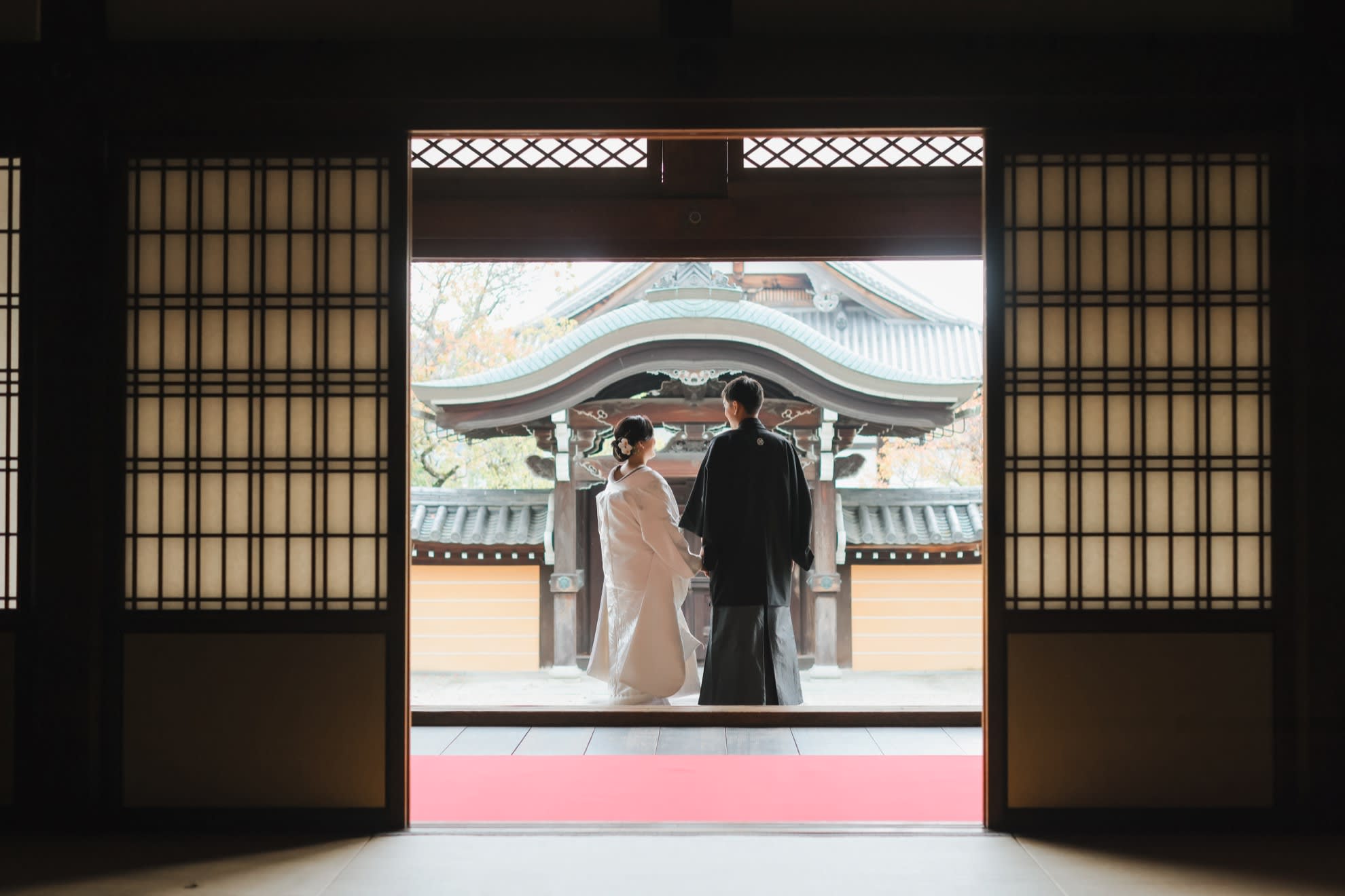 和装姿のお二人を後ろから。