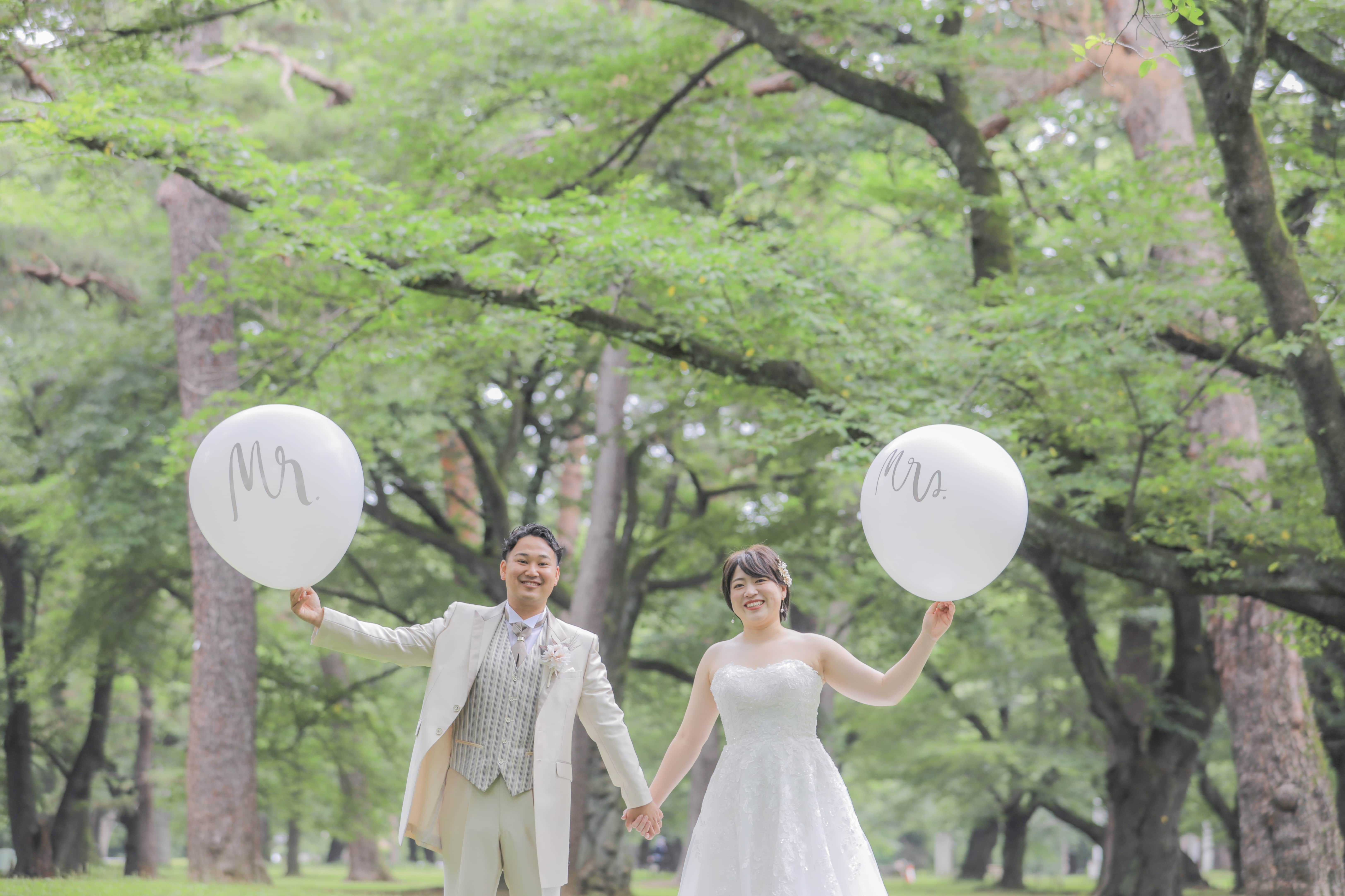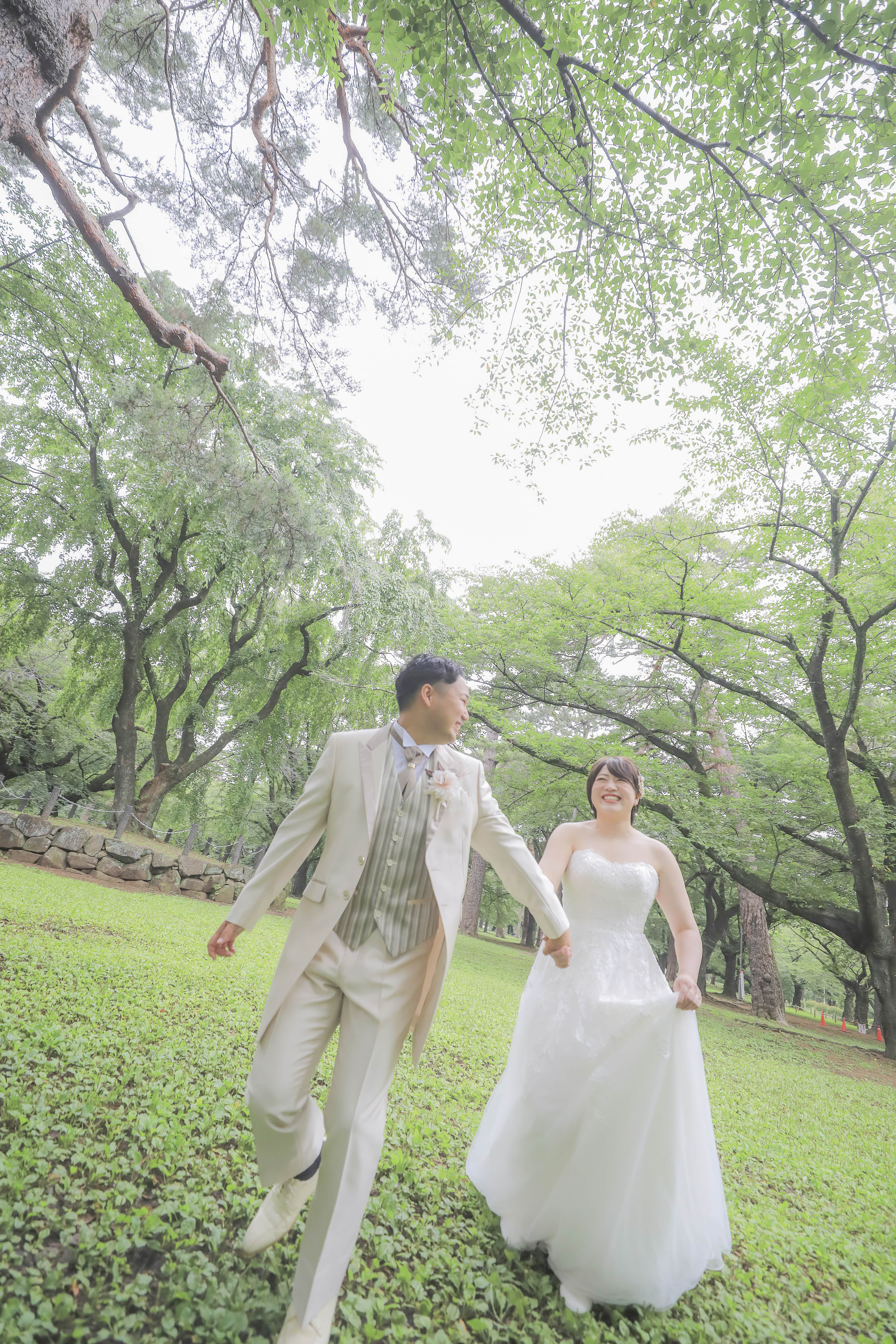 新緑が綺麗な公園でのロケーションはこの時期がいいですよ!お二人のイメージに合わせて撮影していきましょう!