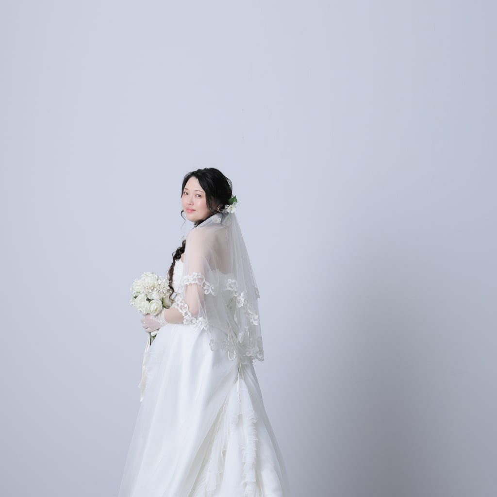 花冠とブーケをもったとっても可愛い1枚!!幸せが伝わってきます!!末長くお幸せに!!