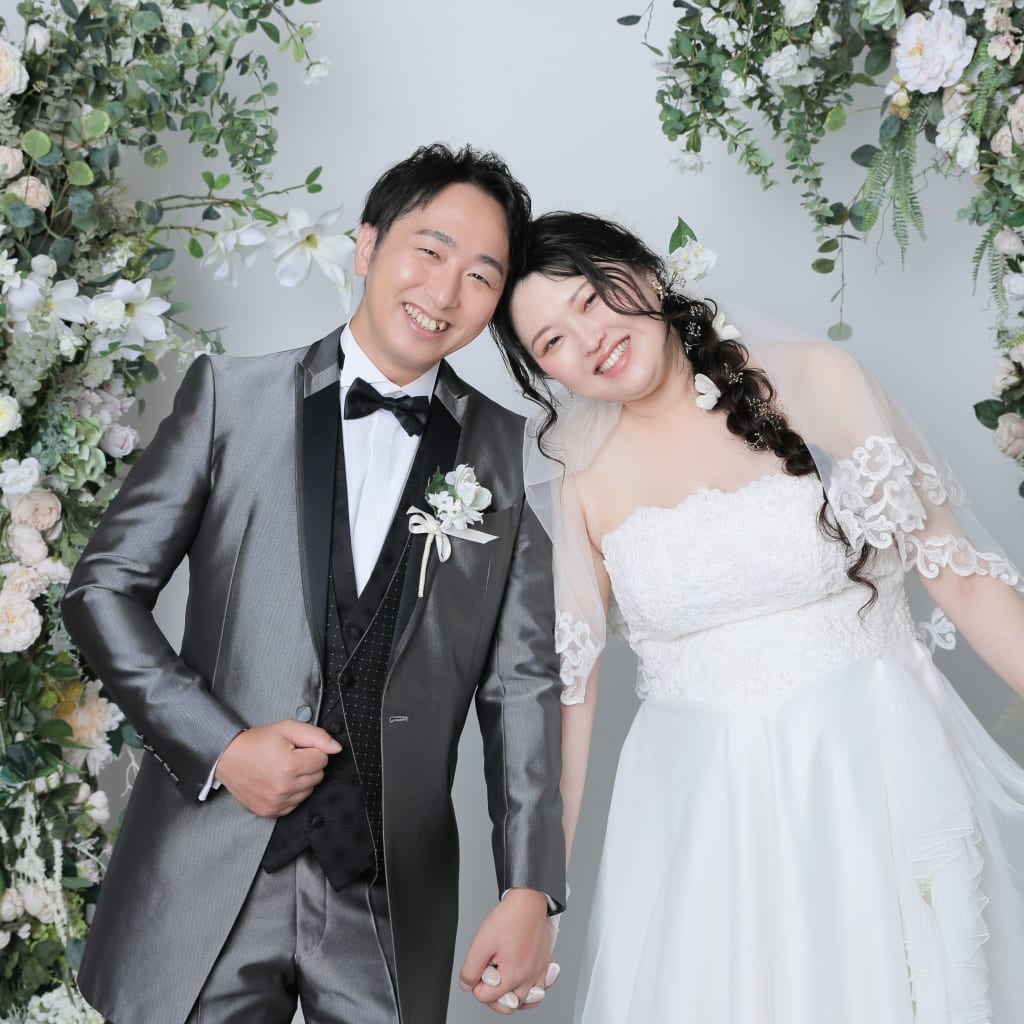 シンプルな白背景はお二人の表情がより引き立ちます!!楽しそうないい表情!!