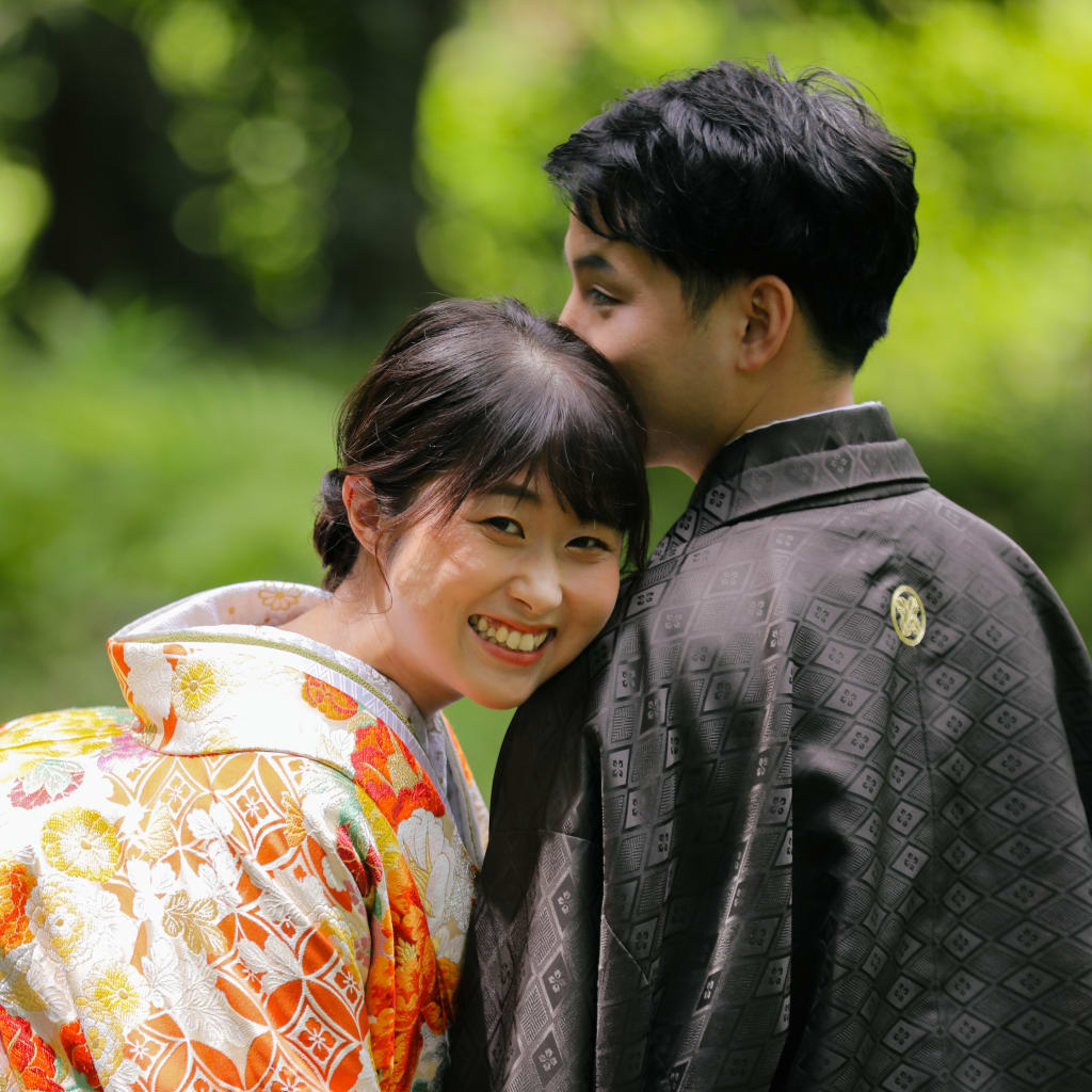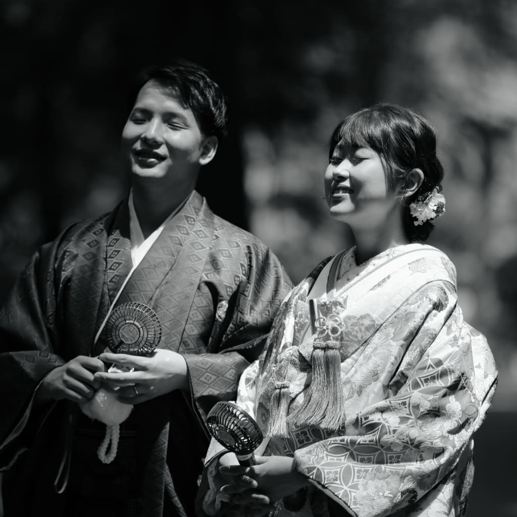和傘や番傘については当店から持っていきます!和傘があるとより和っぽさが増していきますね♪お二人もとっても良い表情をしてくださってます!!