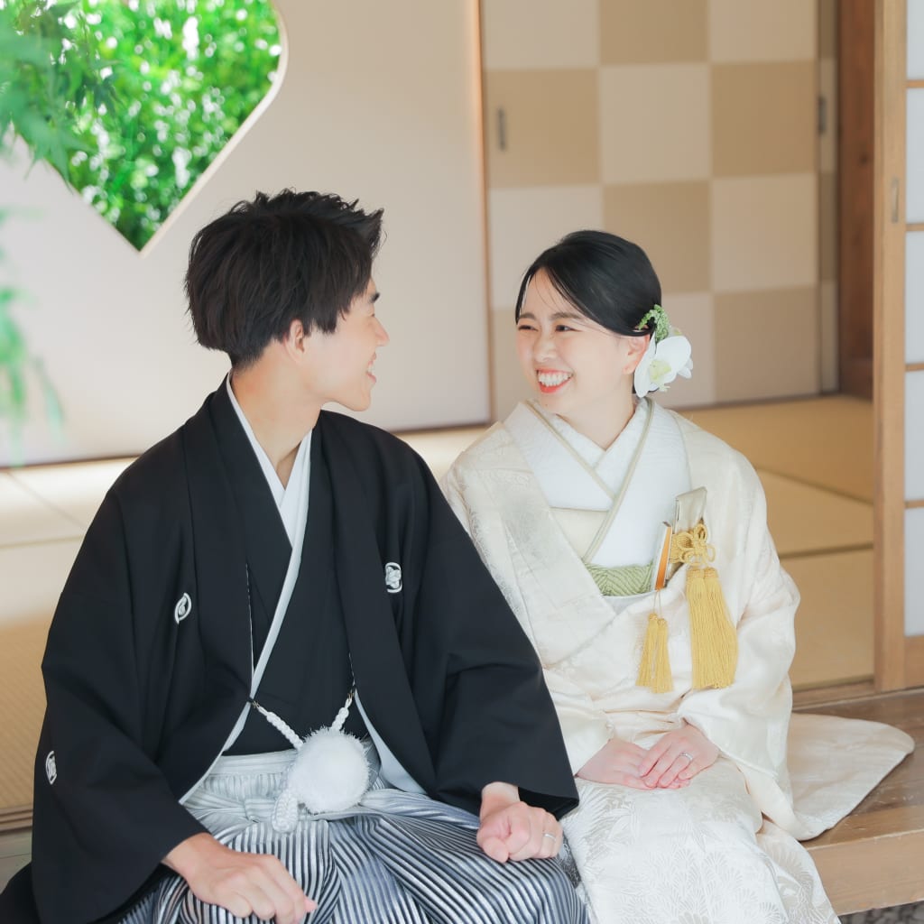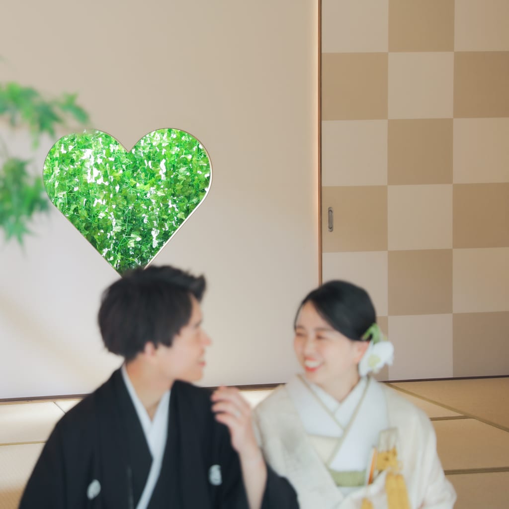 お茶室のあるスタジオで(猪目窓カワイイ!) | デコルテフォトグラフィー | 前撮り・フォトウェディング