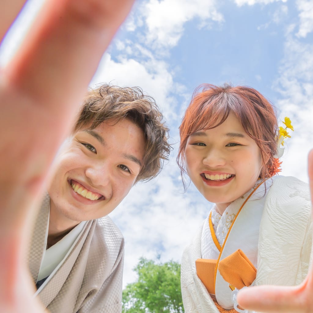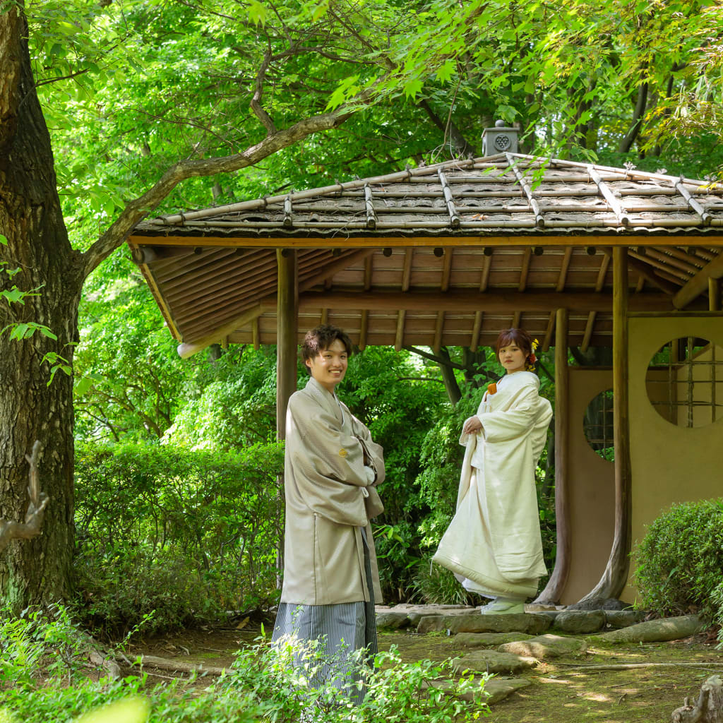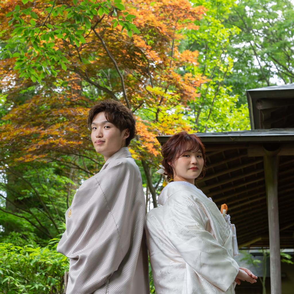 休憩所で和装っぽさを演出。お話ししながら緊張をほぐしましょう。