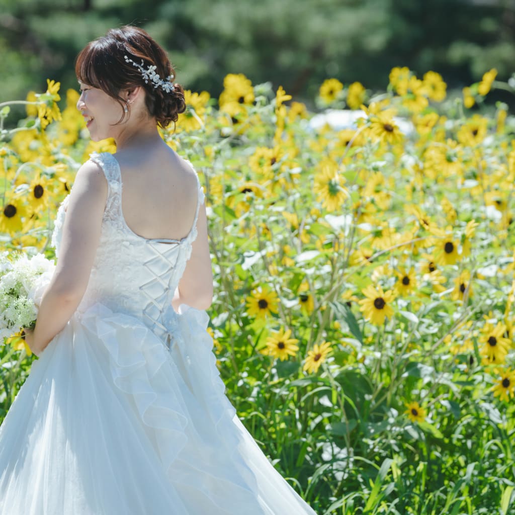 ひまわりのブーケもお二人にご持参いただいていました!ブーケを使ったお写真もたくさんお撮りしました!
