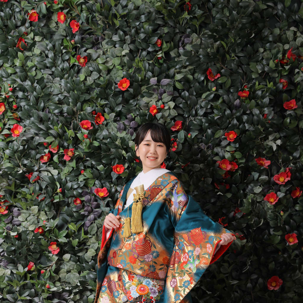 椿の背景ではかっこいい背中合わせのお写真を撮影しました!!