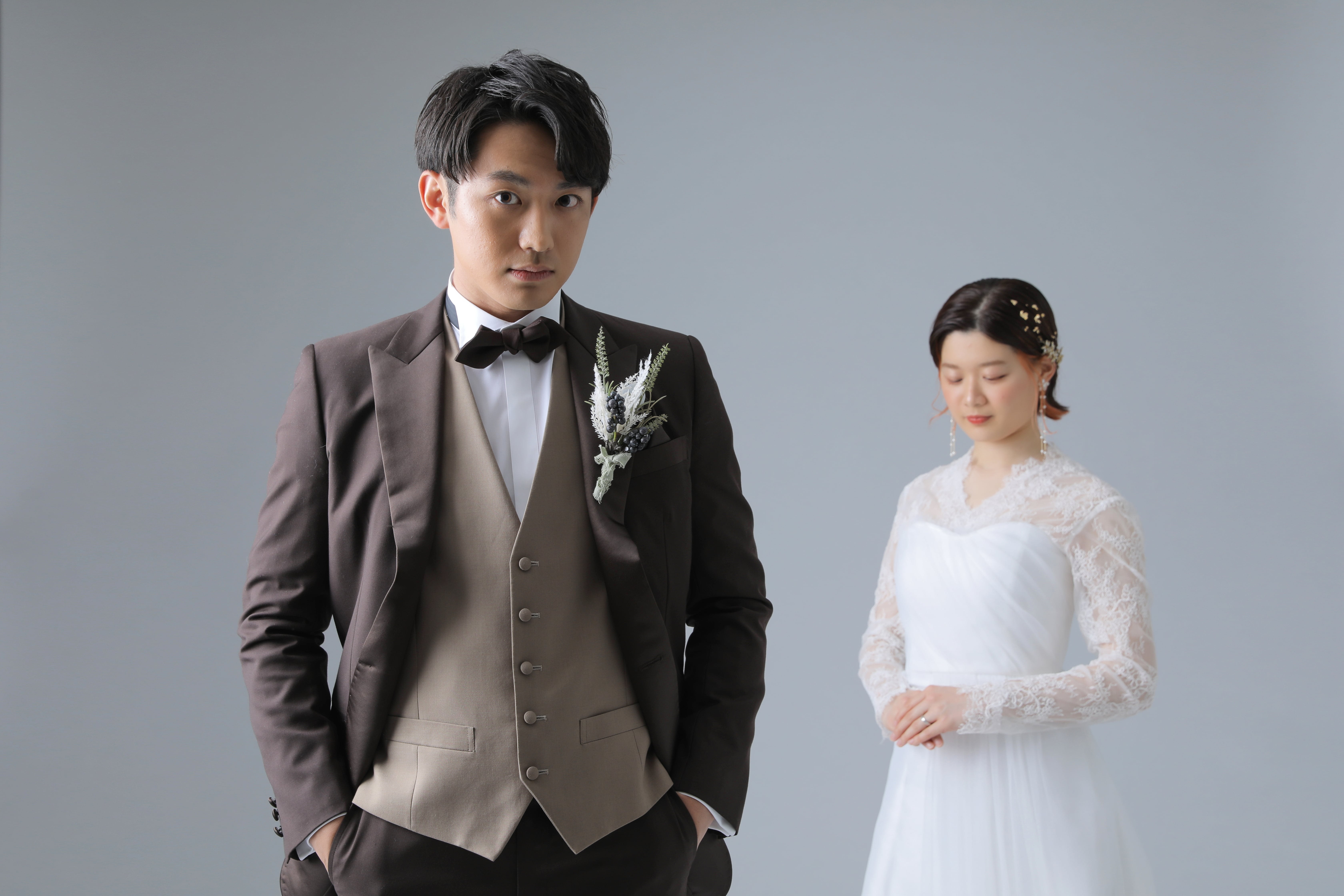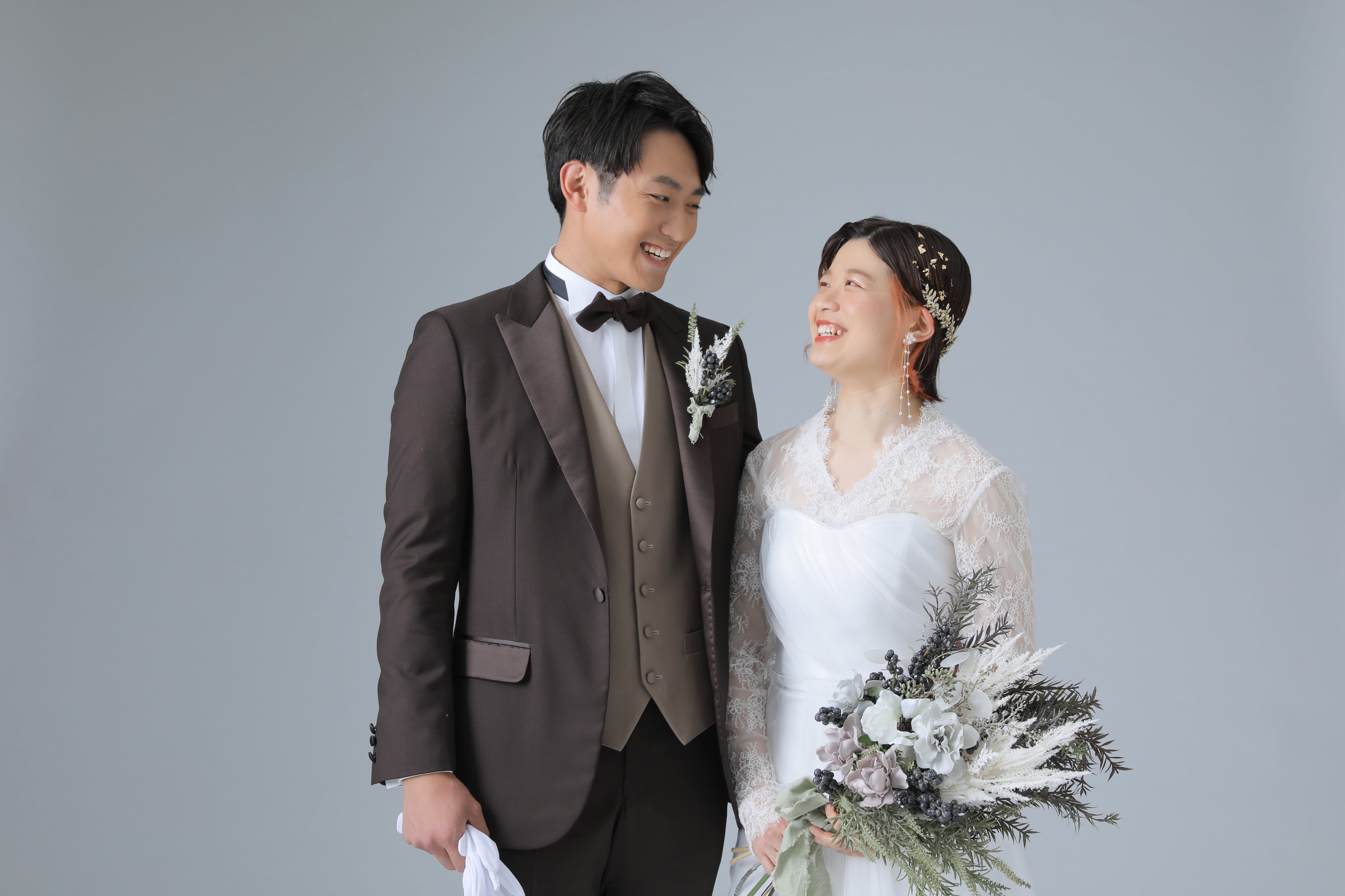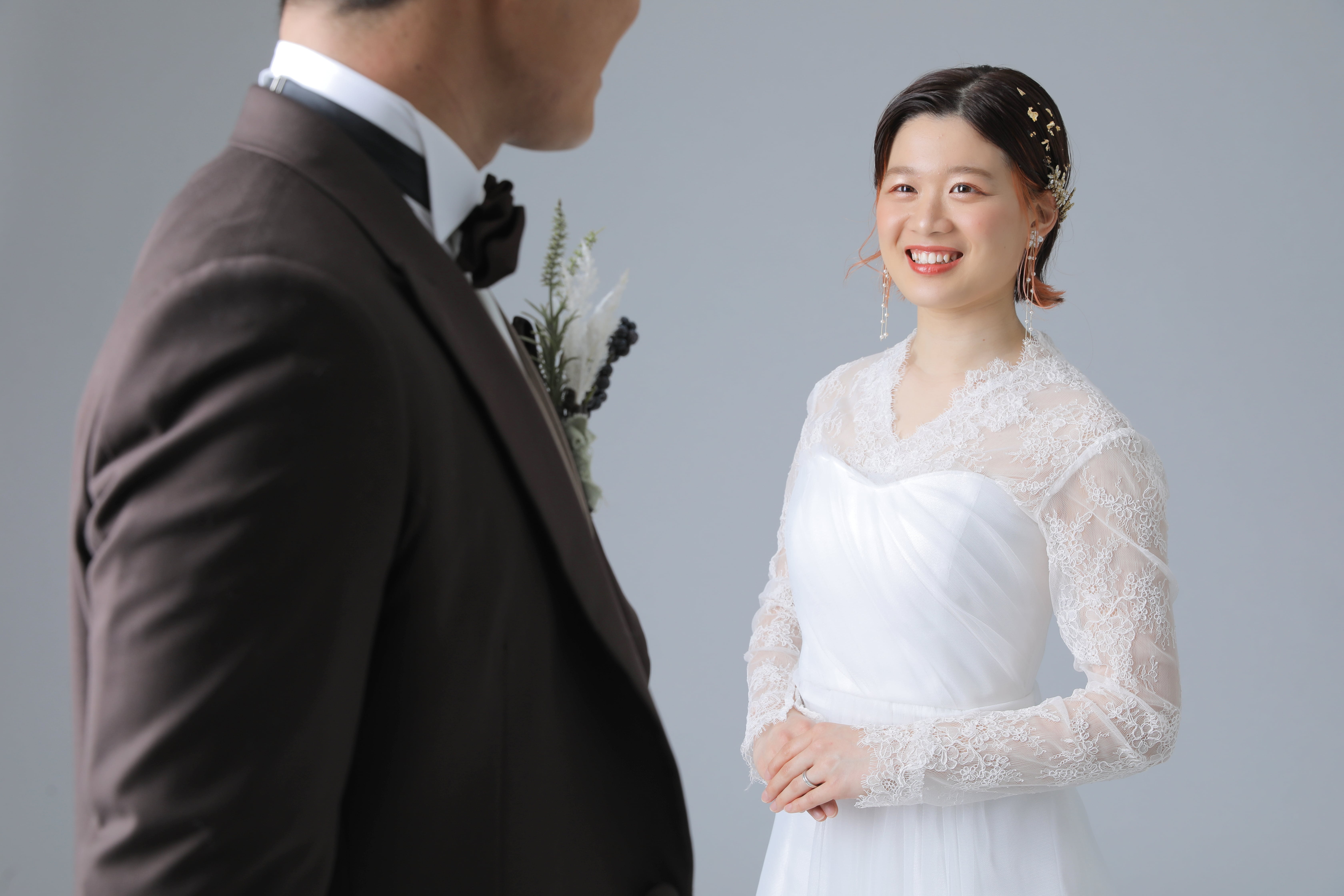 シンプルな背景だからこそ主役のお二人が際立ちます!お二人ともモデルのようです♪