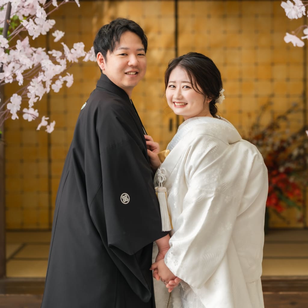 薄紫の藤のお花はお二人のコーディネートにもぴったりでした◎