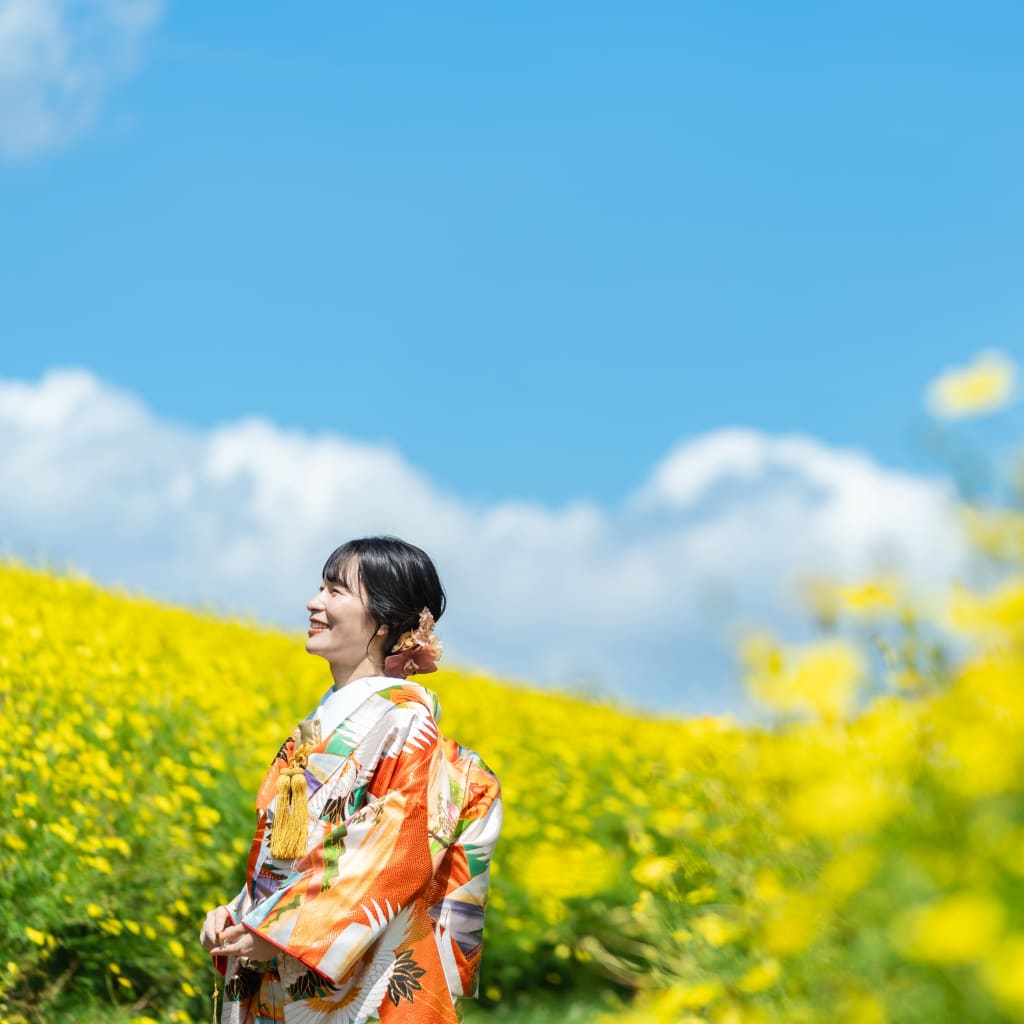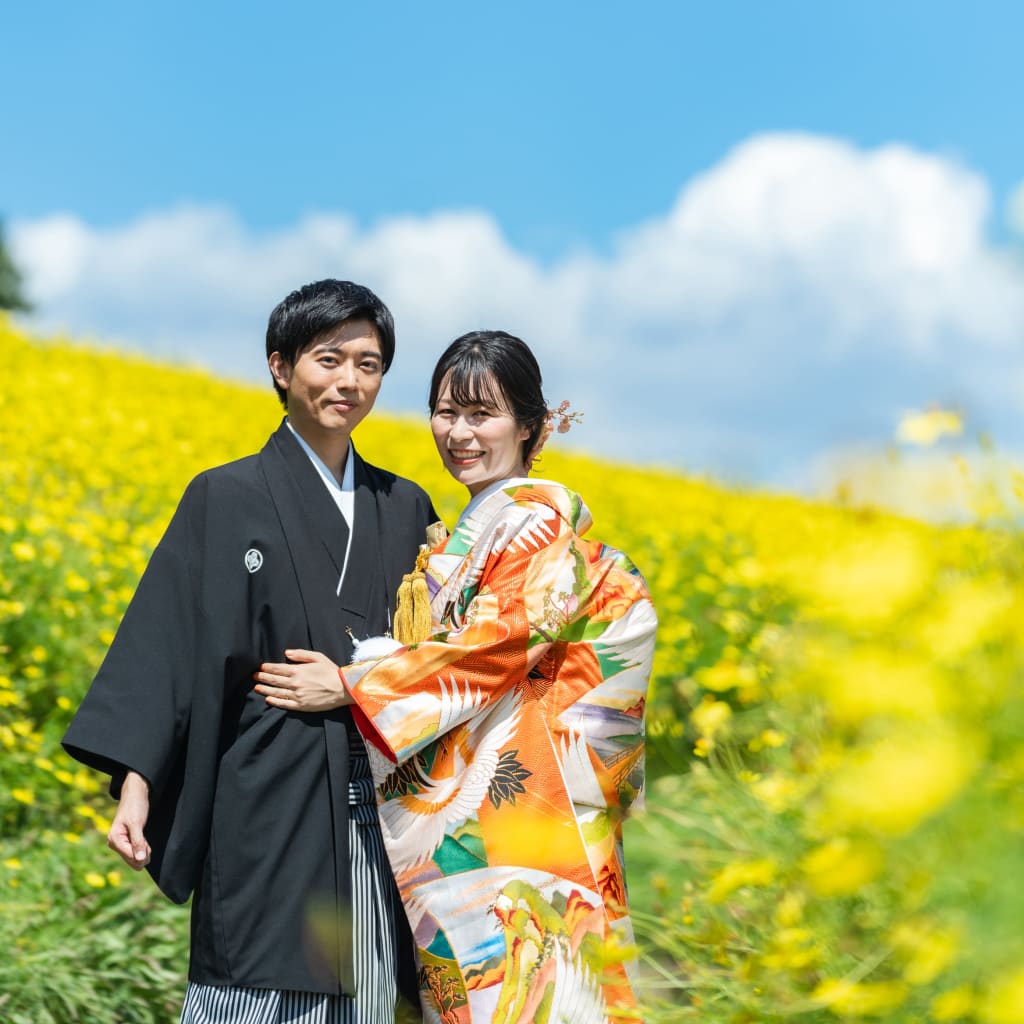 本日は、今が旬の黄花との撮影をご紹介します! 今年は少し早く咲き始めました!