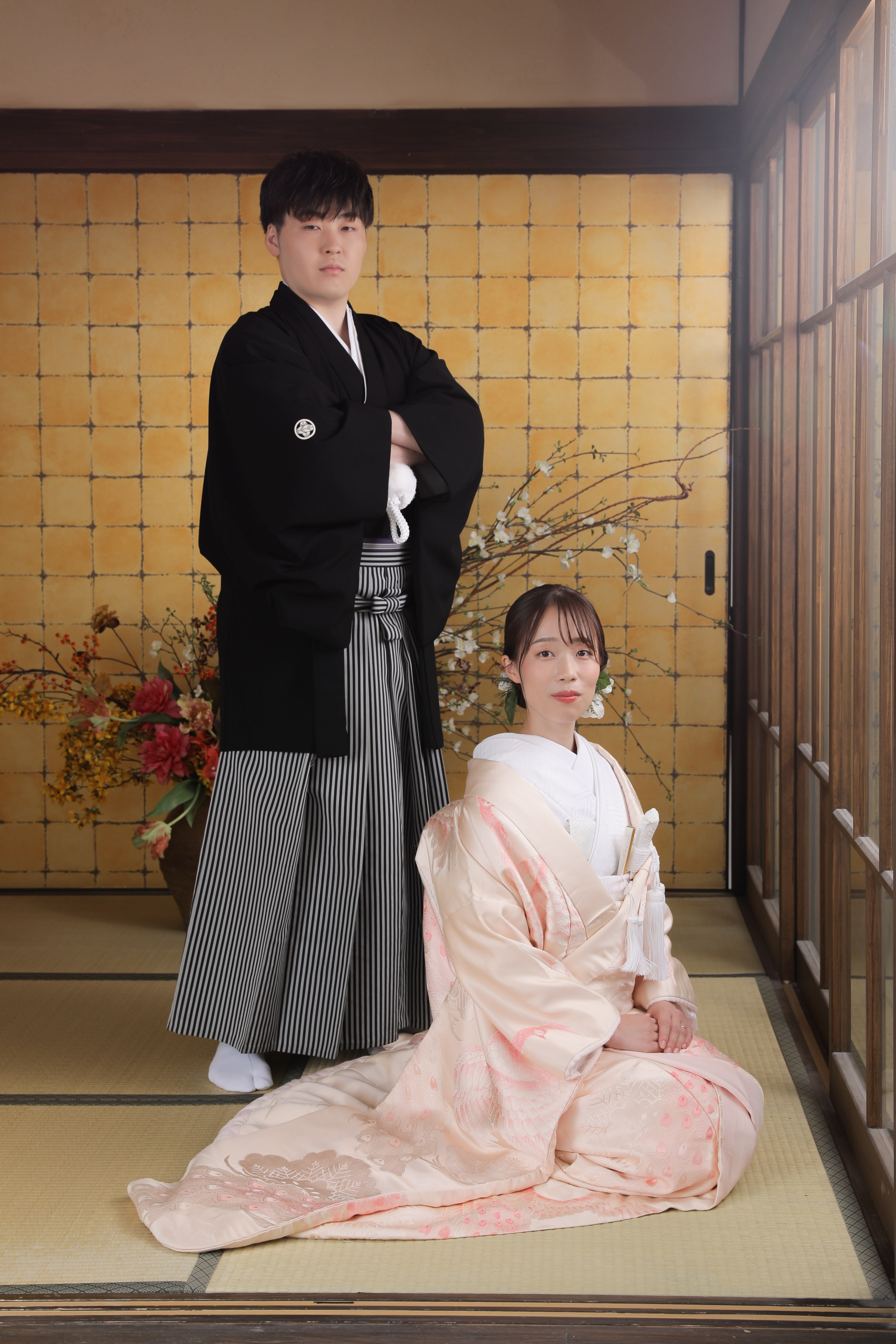 屋内庭園スタジオで紅葉と一緒に撮影!!お二人の自然な笑顔がきらきらしていてとっても素敵でした!!