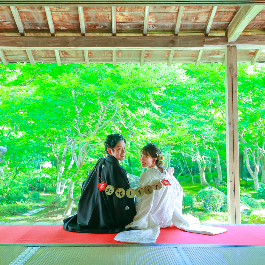 本堂の中での撮影は、和装がとっても映えて綺麗ですね!和装がより一層引き立ちますね。