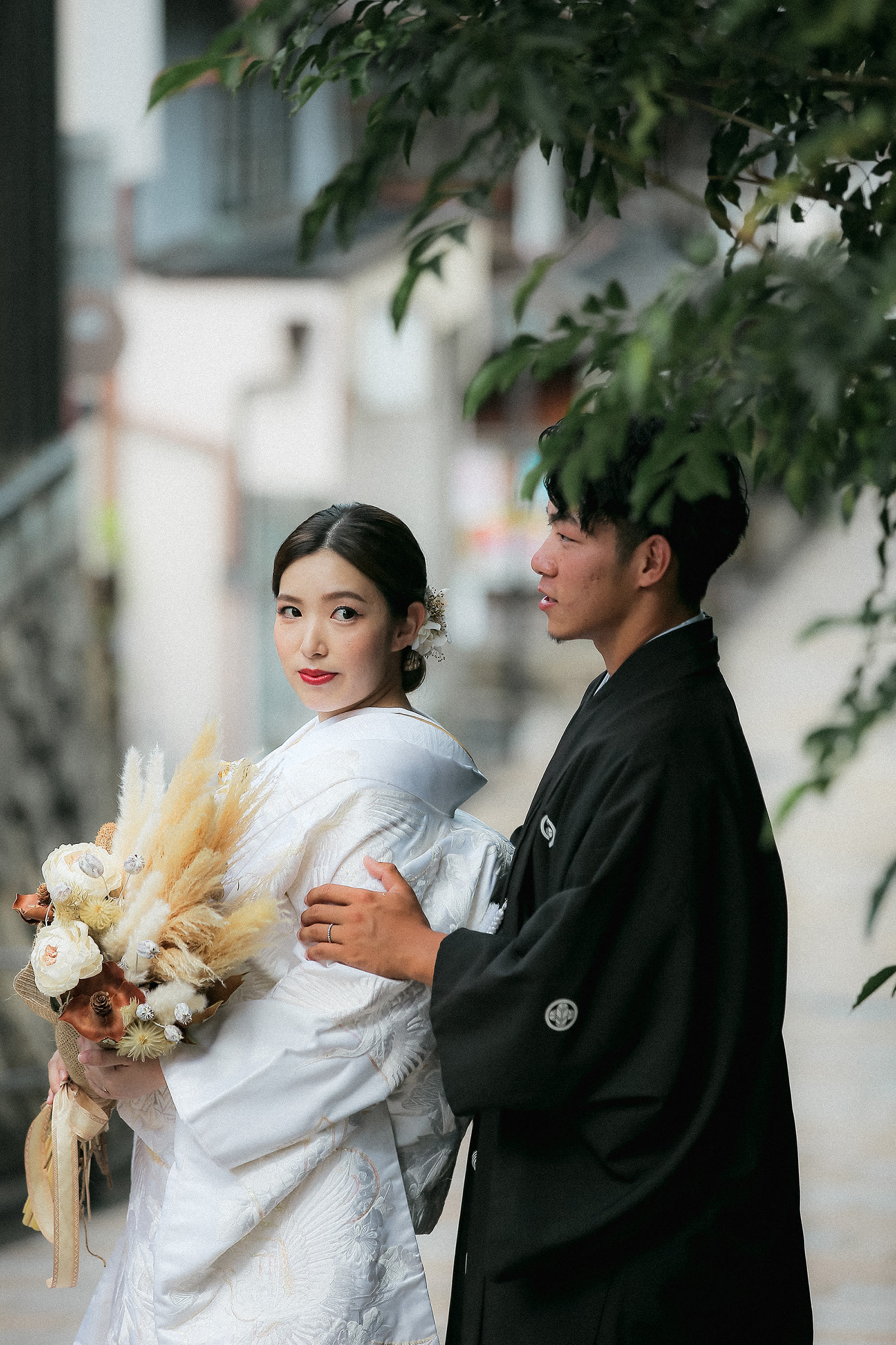 和装でしっとり横顔ショットも綺麗ですね。髪飾りもしかっり映っていて素敵です!持ち込みの髪飾りもこんな形で、お写真に残すのもおすすめです♪