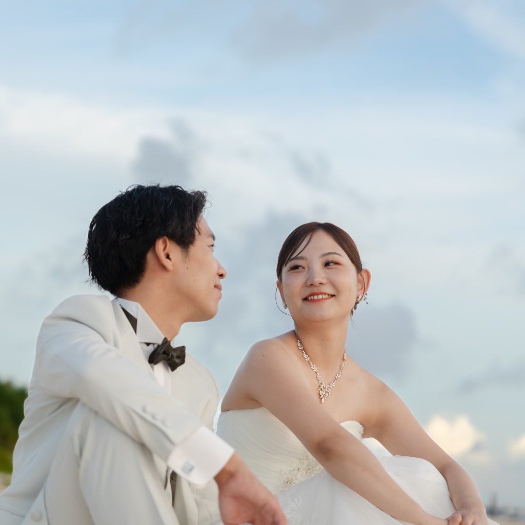 夕日のキラキラの中、指輪をはめるシーンを・・・♡