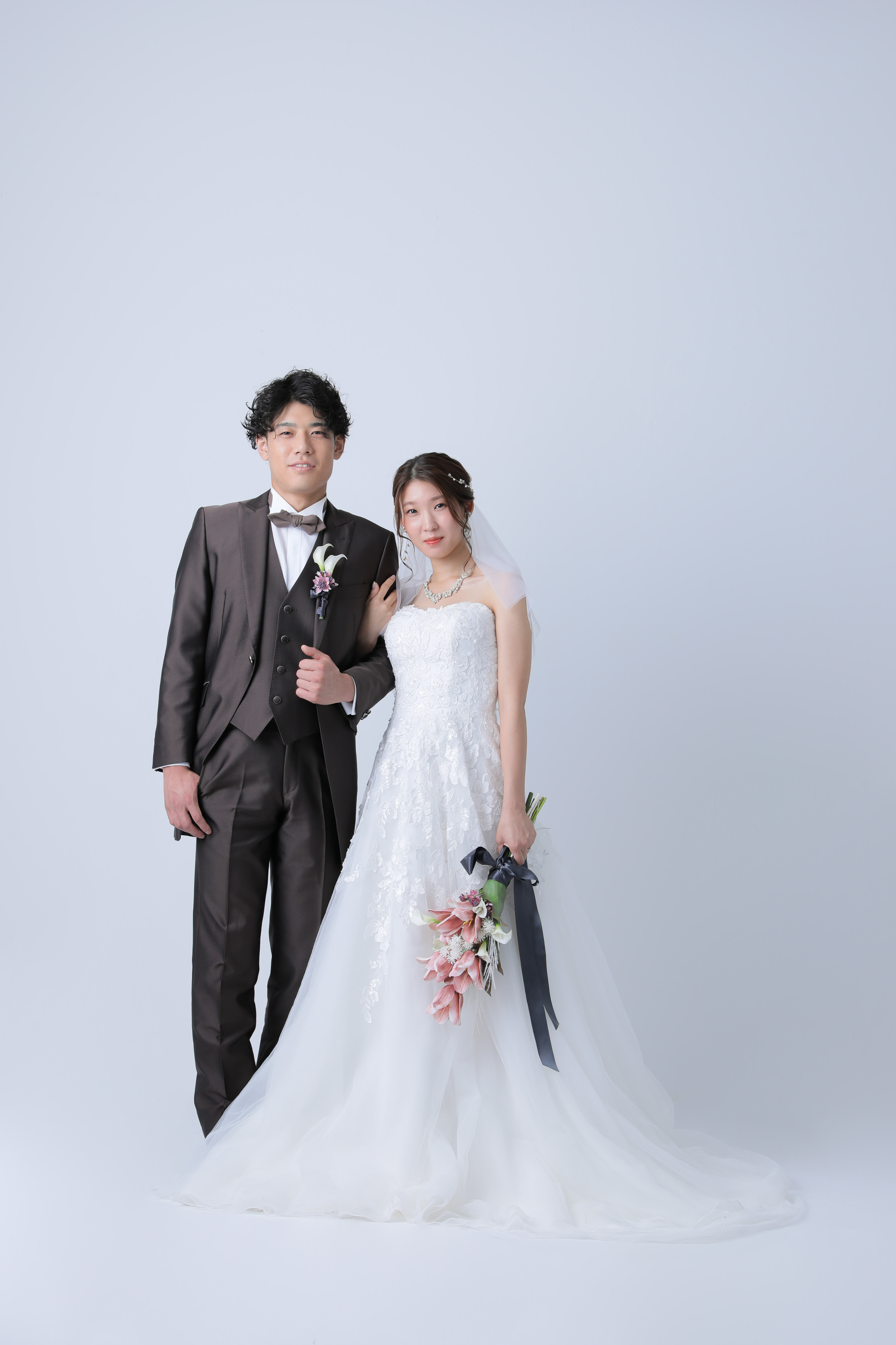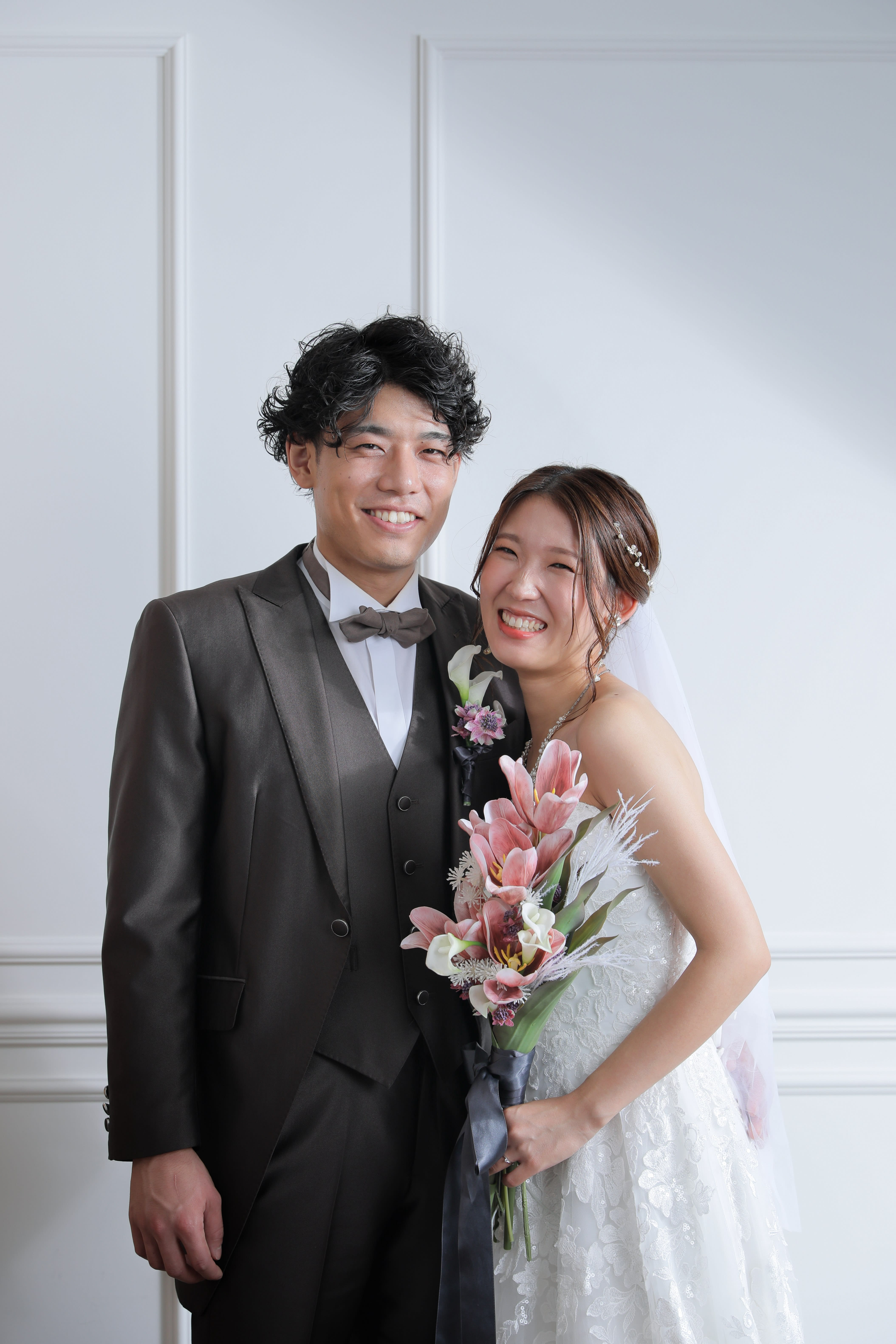 おしゃれな白壁でかっこいい雰囲気で撮影!!ポージングも決まってました!!素敵でとっても楽しい撮影ありがとうございました!!末長くお幸せに!