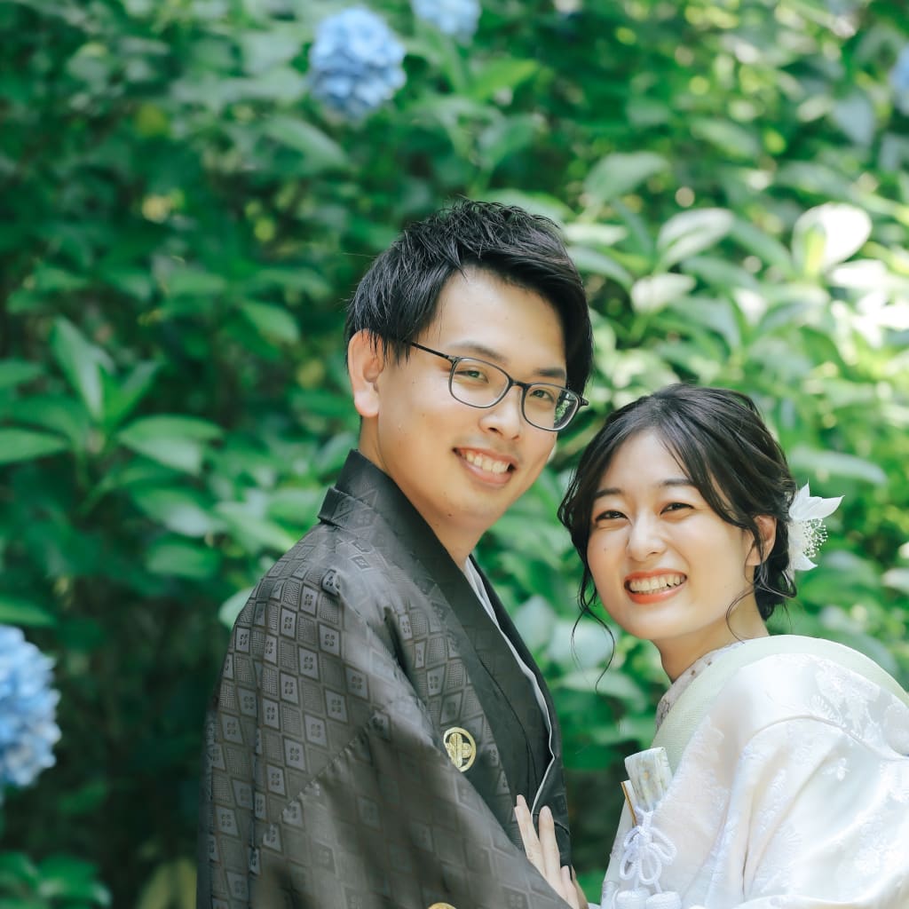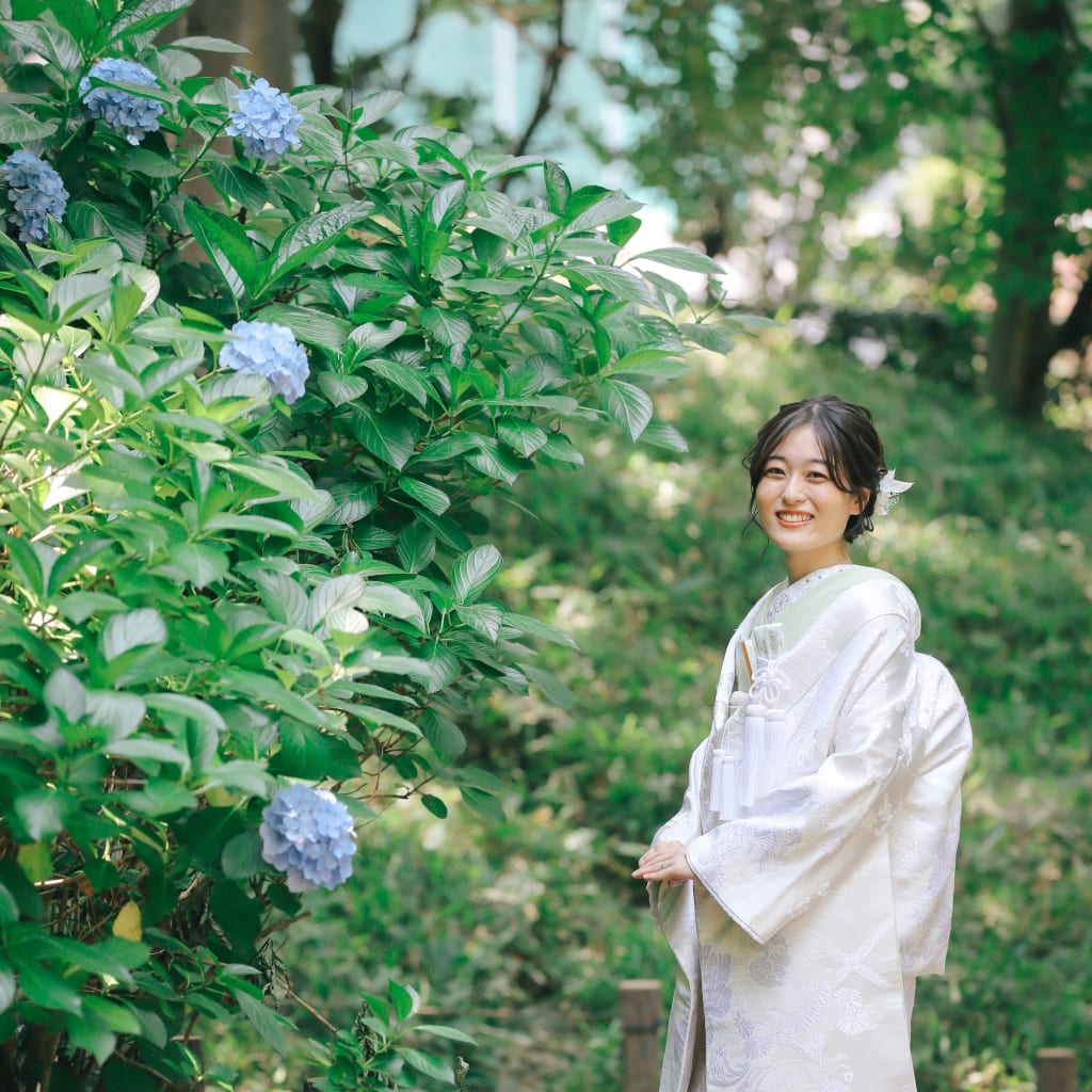 紫陽花と白無垢