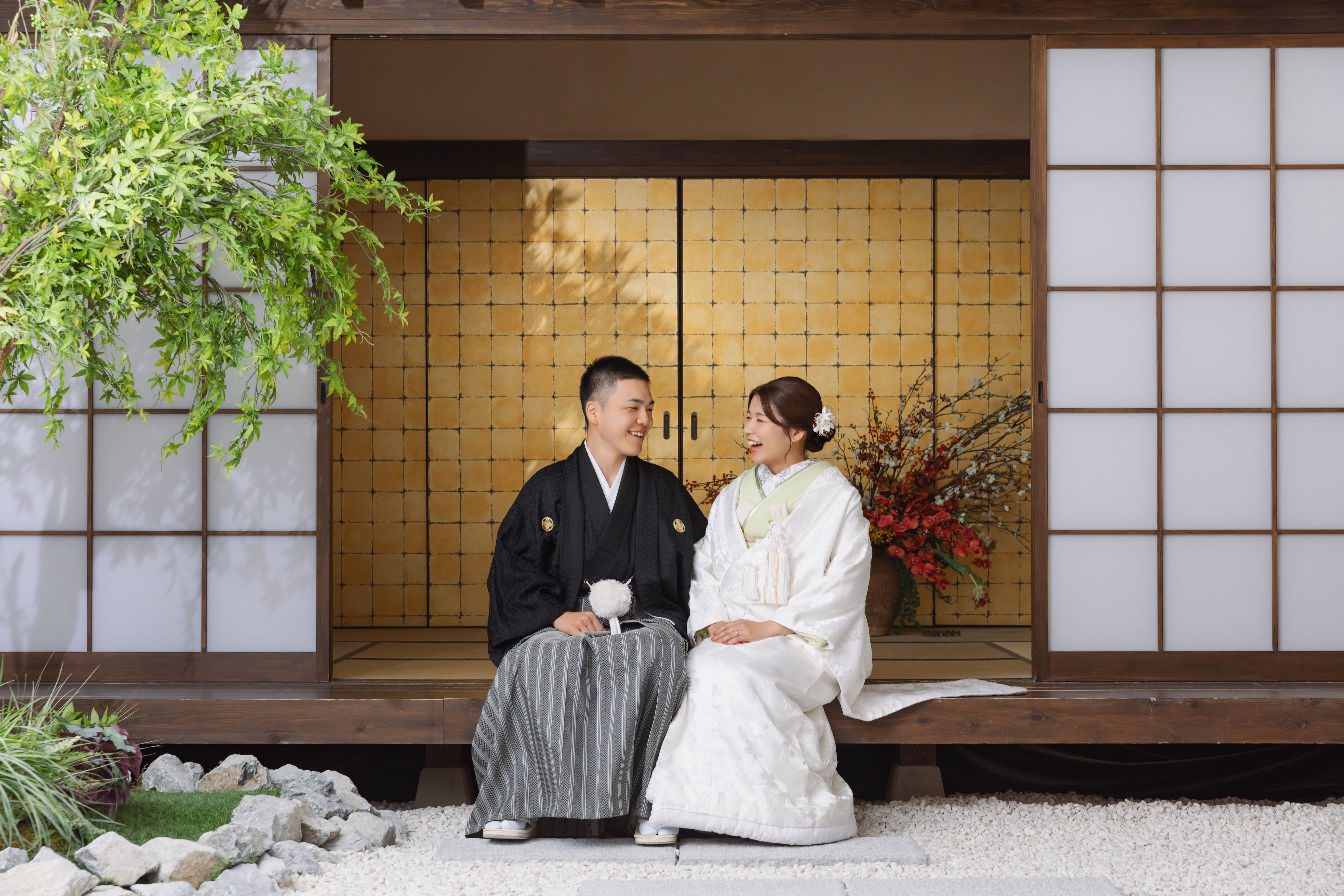 お二人できゅっと寄り添いあったショット。 笑顔の溢れる1枚に♡