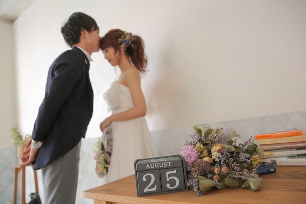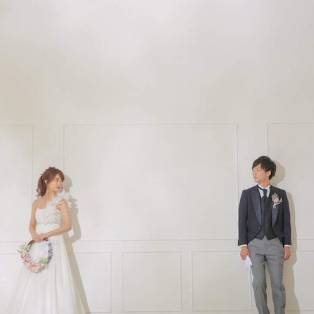 洋装で前撮りのお二人♪