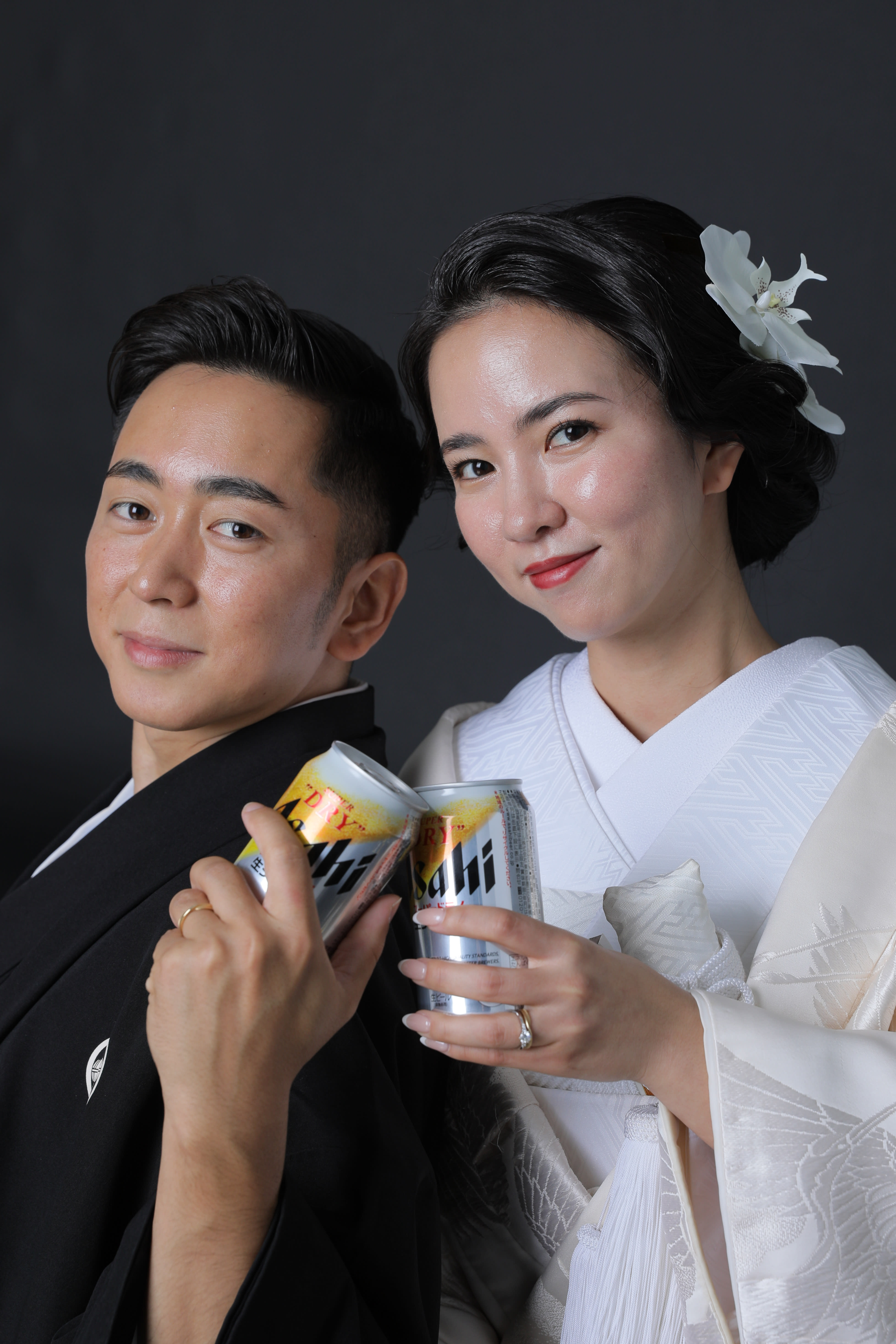 缶ビールで乾杯!楽しい宴のような雰囲気で撮影!!!