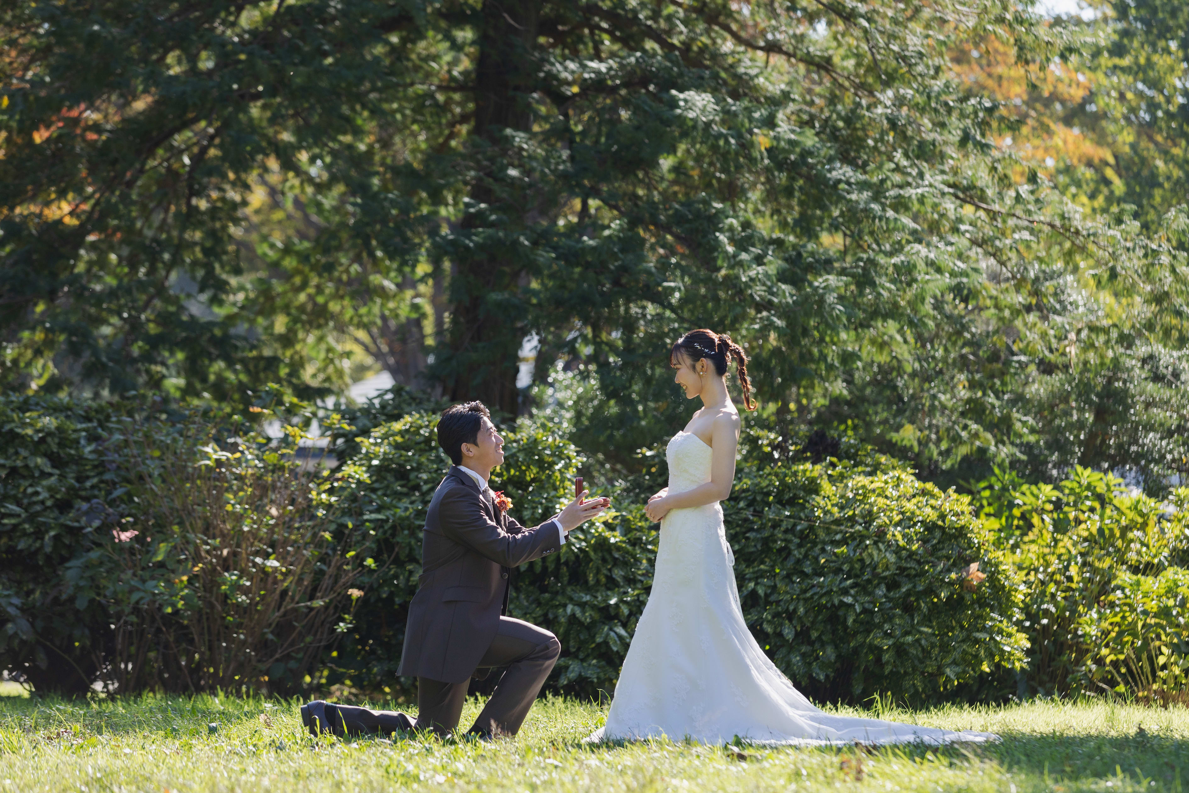 逆光を活かして、ふんわり可愛く♡ お姫様抱っこでぐるぐる回っていただきました!